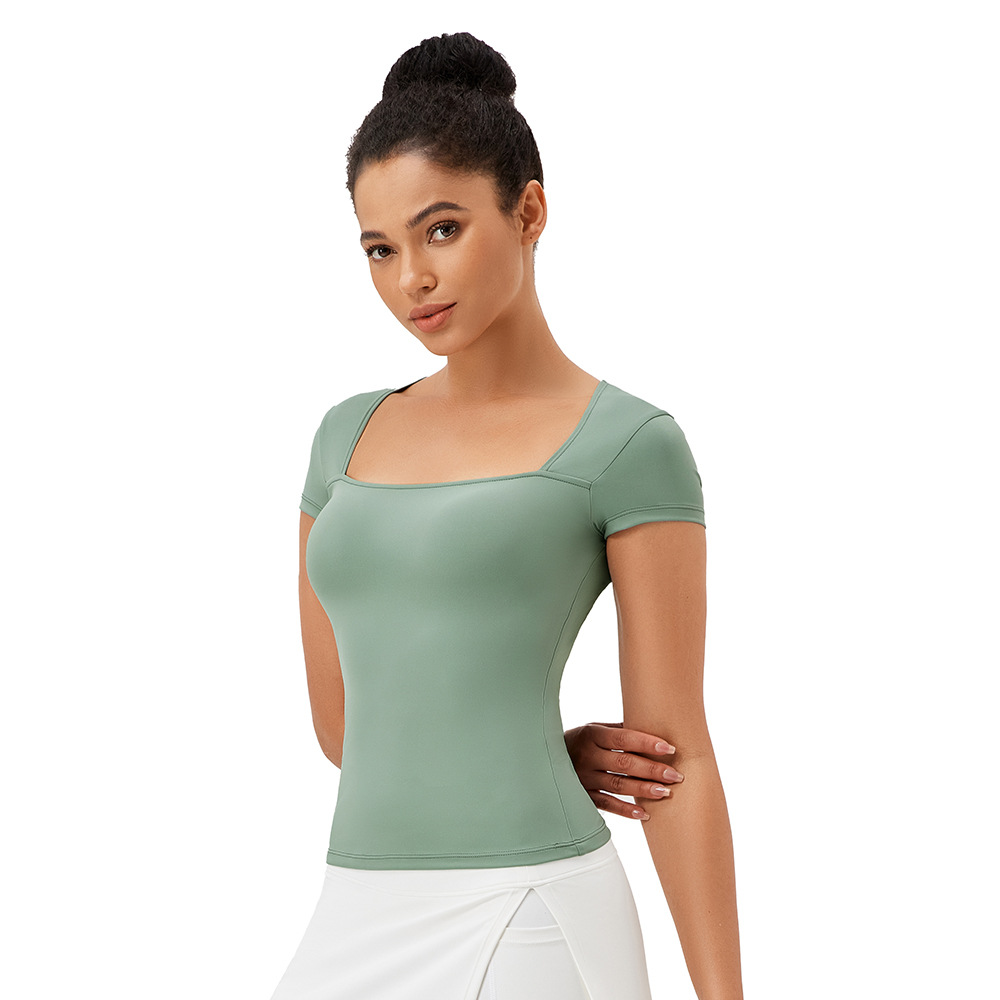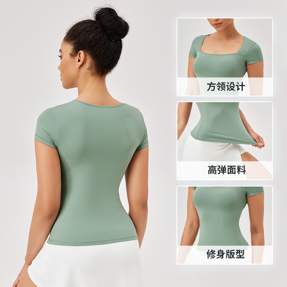 Women's Spring and Summer Square Collar Sports Short-sleeved Slim-fit Tight Quick-dry Running Fitness T-shirt Naked Breathable Yoga Top