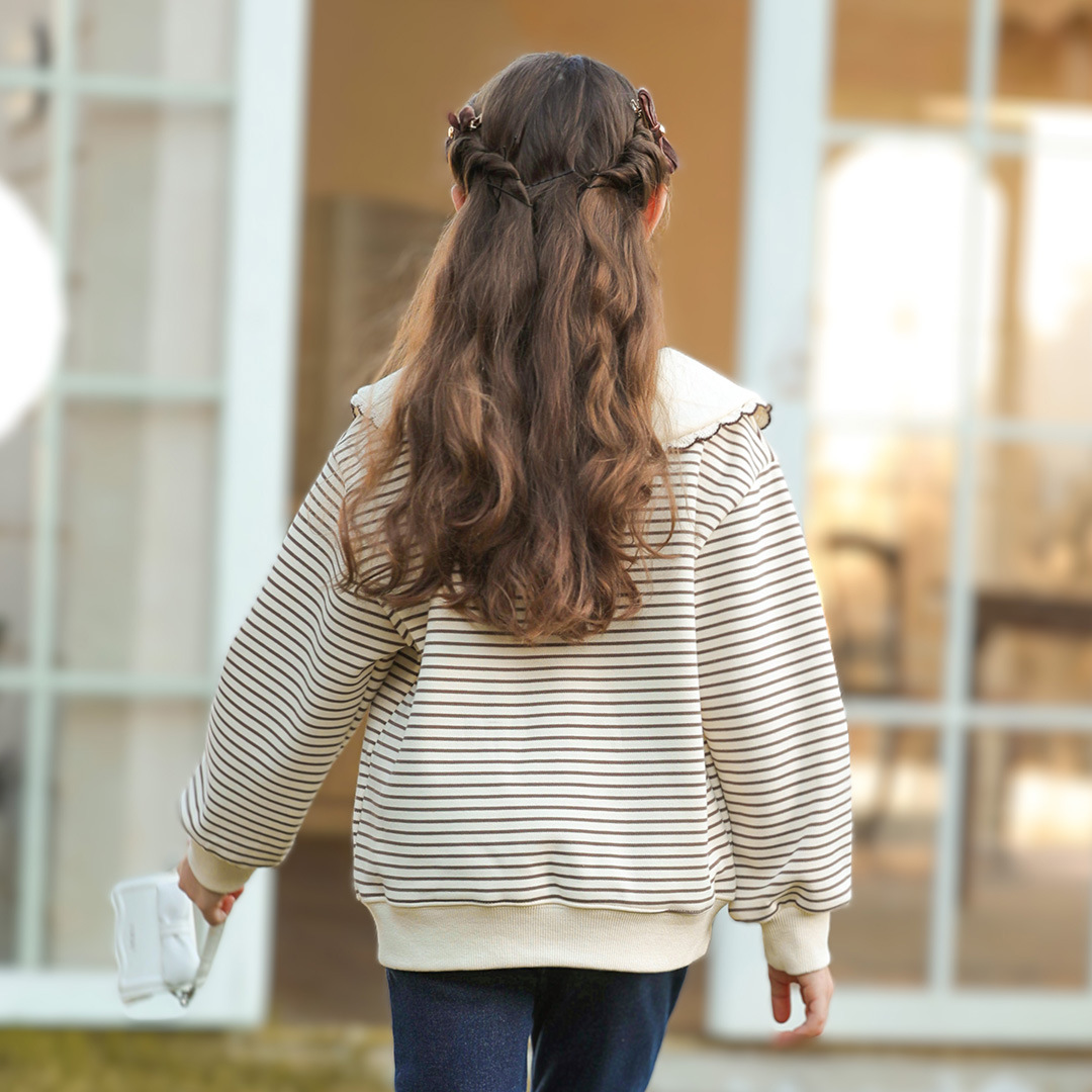 Women's Spring long-sleeved sweater 2024 fashionable striped flower large shoulder round neck navy college style pullover top wholesale