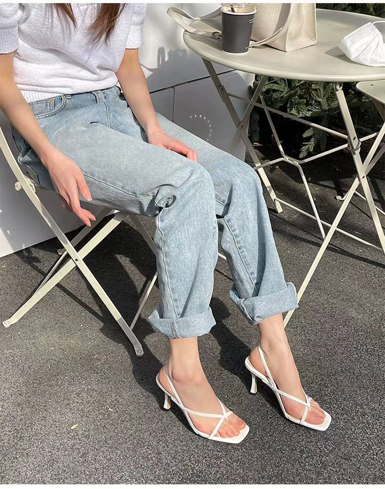 | nameOriginal | Women's square toe stiletto niche white thong sandals |
