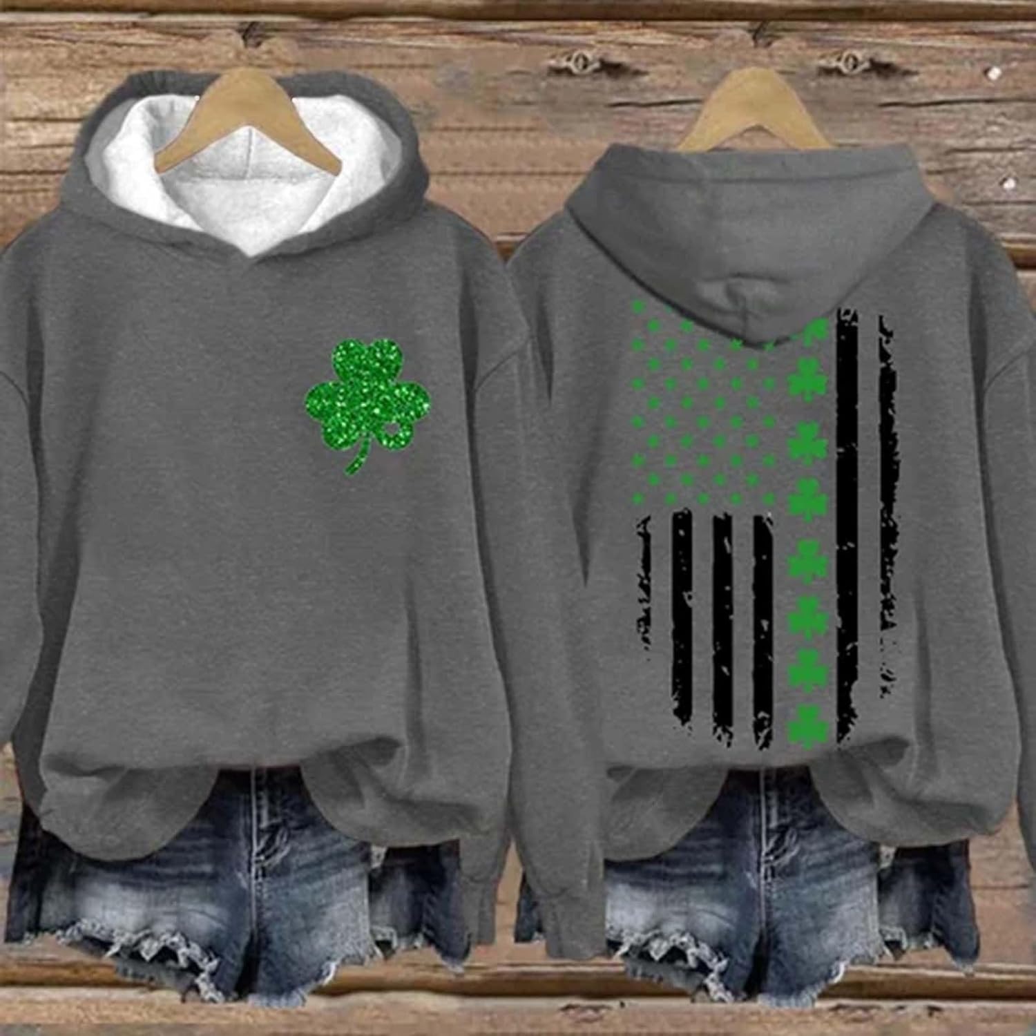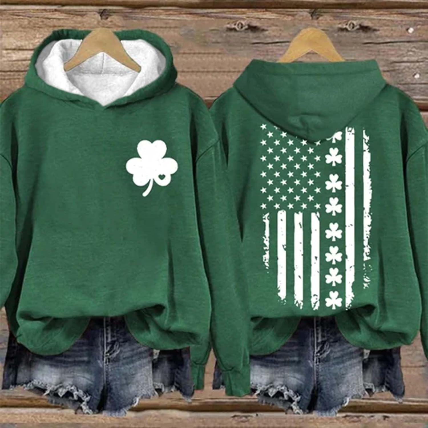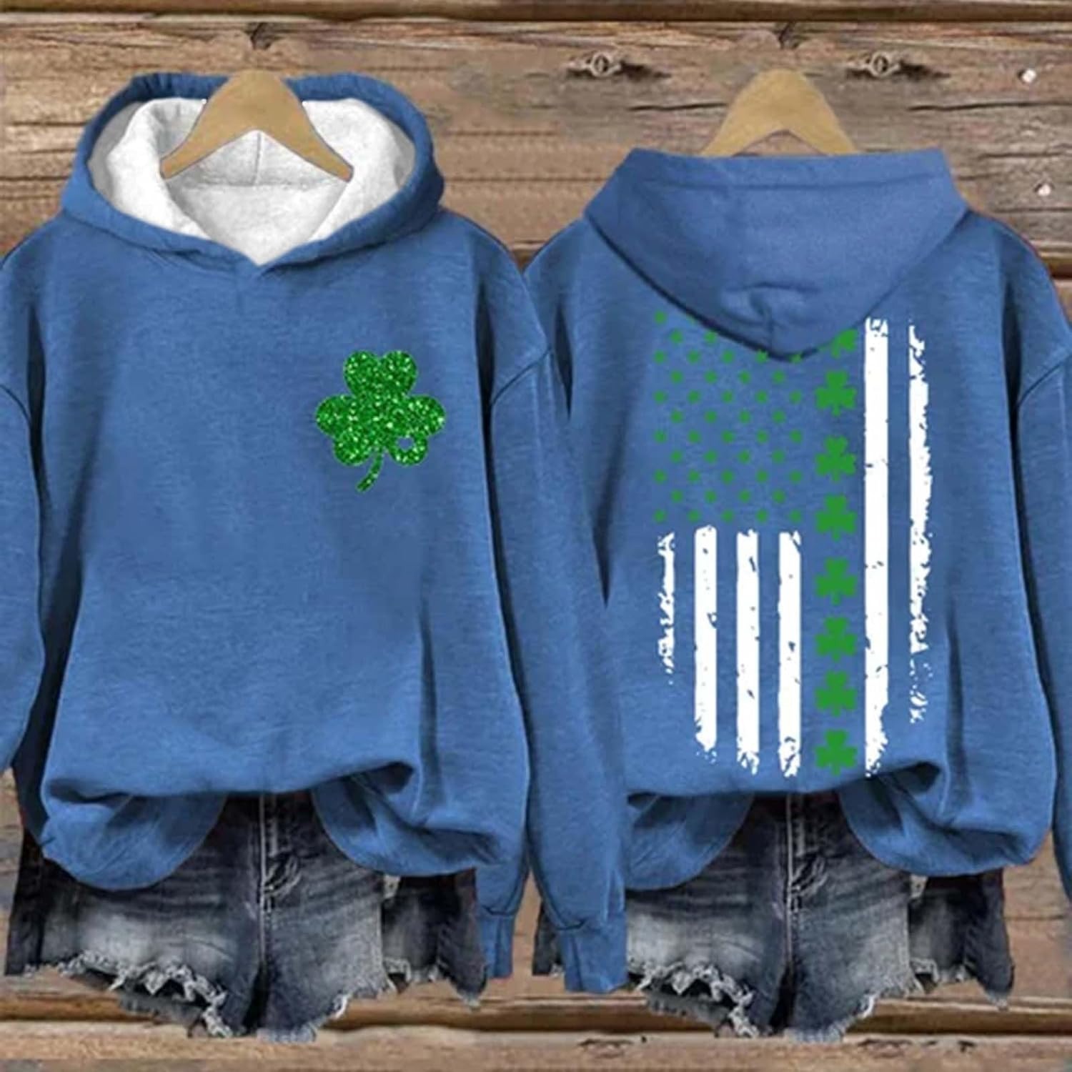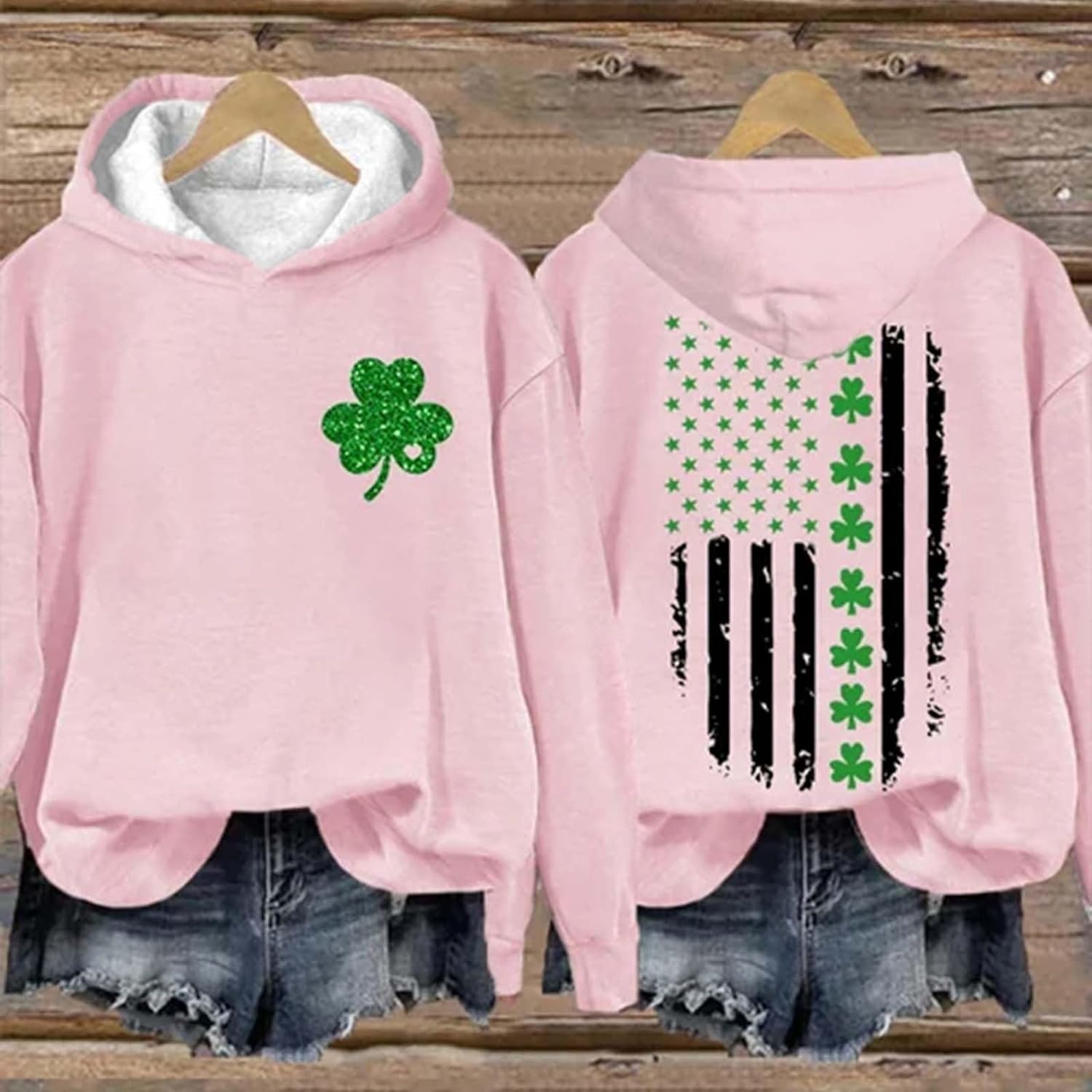 | nameOriginal | Women's St. Patrick's Day American flag printed clover pattern casual top Clover long sleeve |