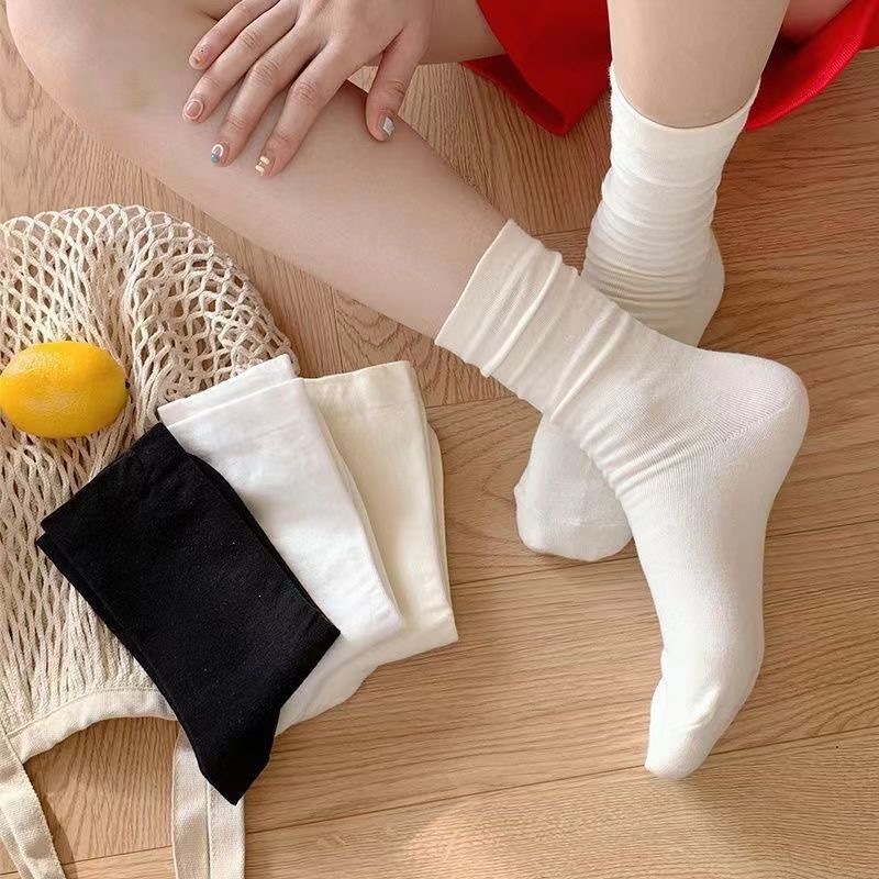 Women’s Stacking Socks Autumn and Winter White Moon Socks Cotton Korean Style All-match Women’s Mid-tube Socks Moon Socks Breathable Sweat Absorption