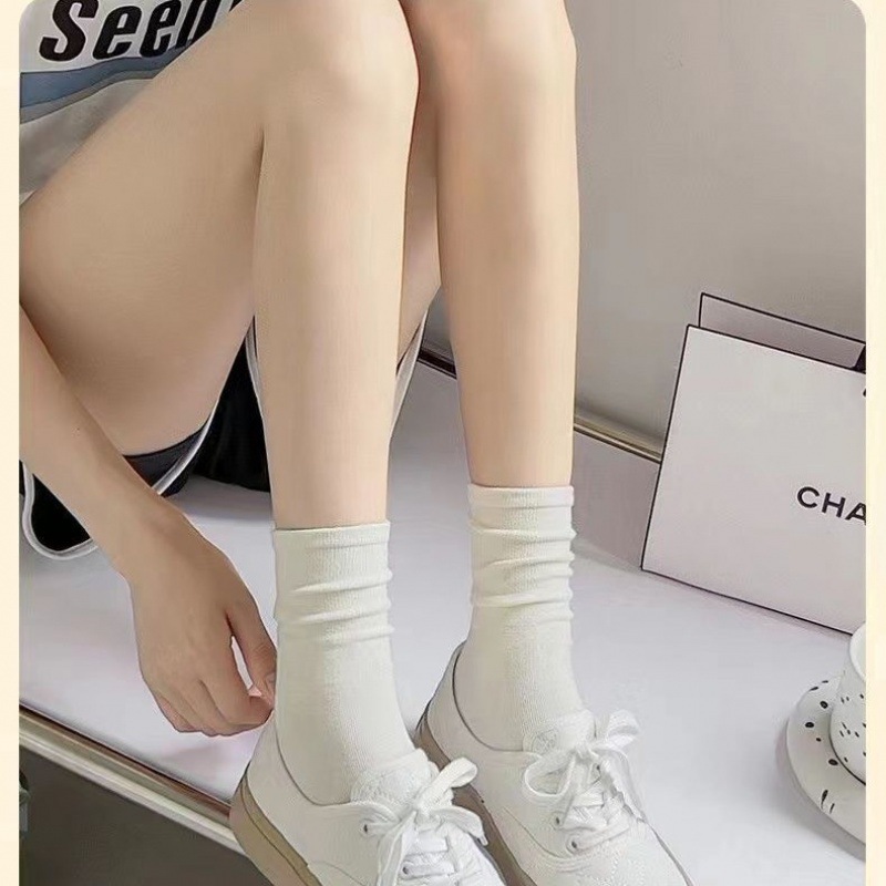 Women's Stacking Socks Autumn and Winter White Moon Socks Cotton Korean Style All-match Women's Mid-tube Socks Moon Socks Breathable Sweat Absorption