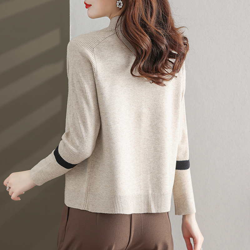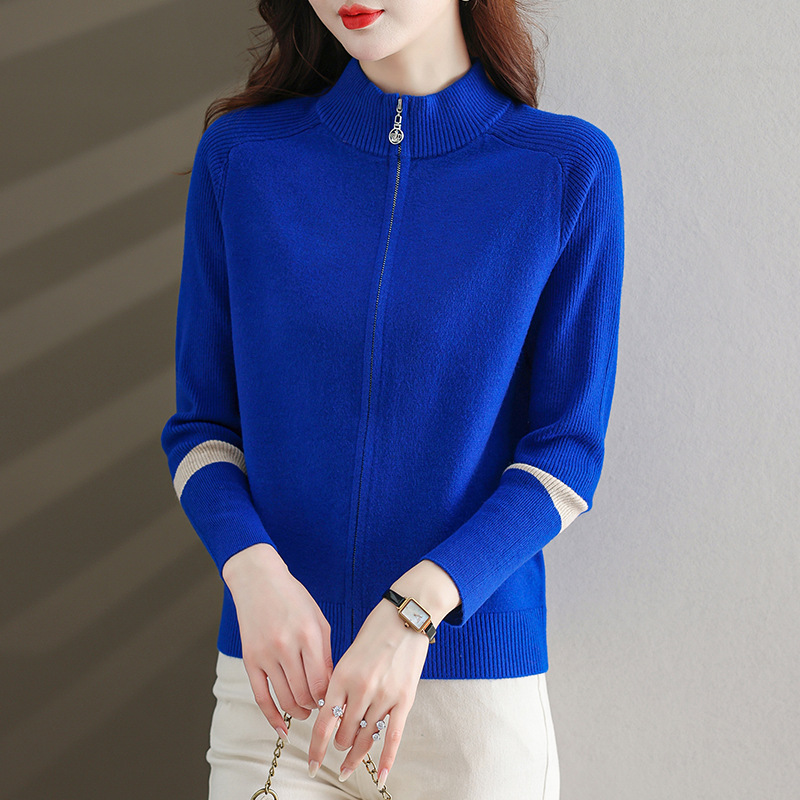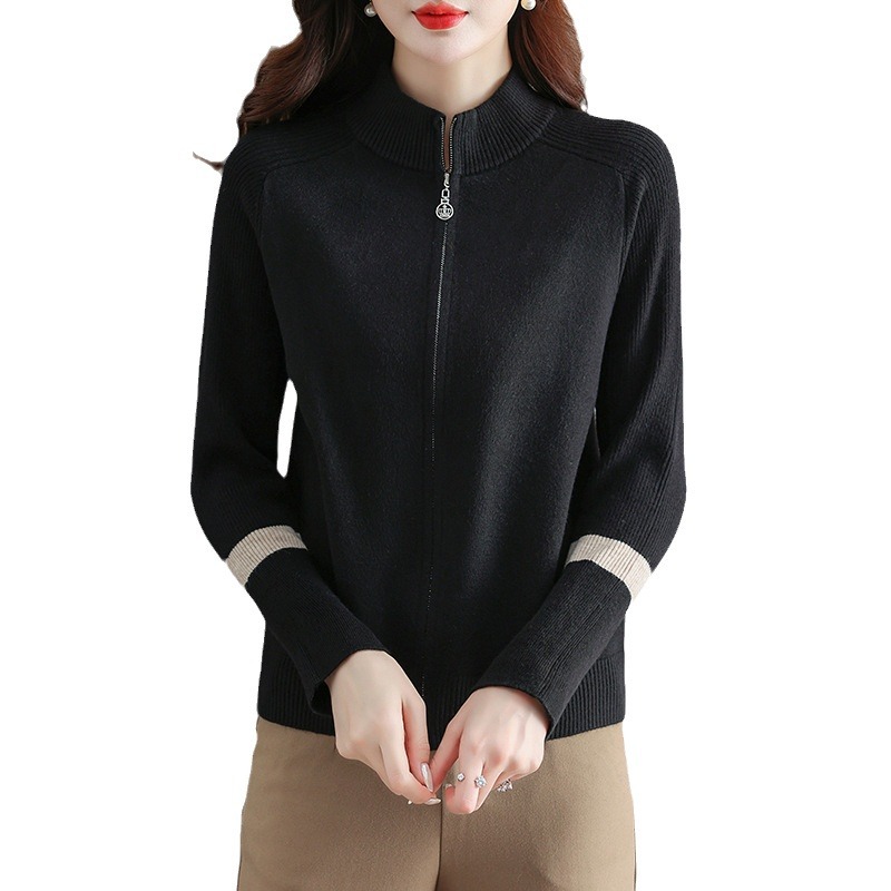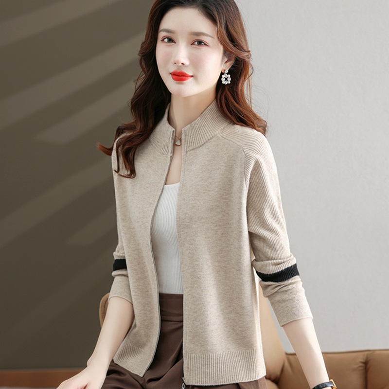| nameOriginal | Women's stand-neck sweater 2024 spring and autumn contrast sweater zipper coat loose plus size knitted cardigan outer wear |