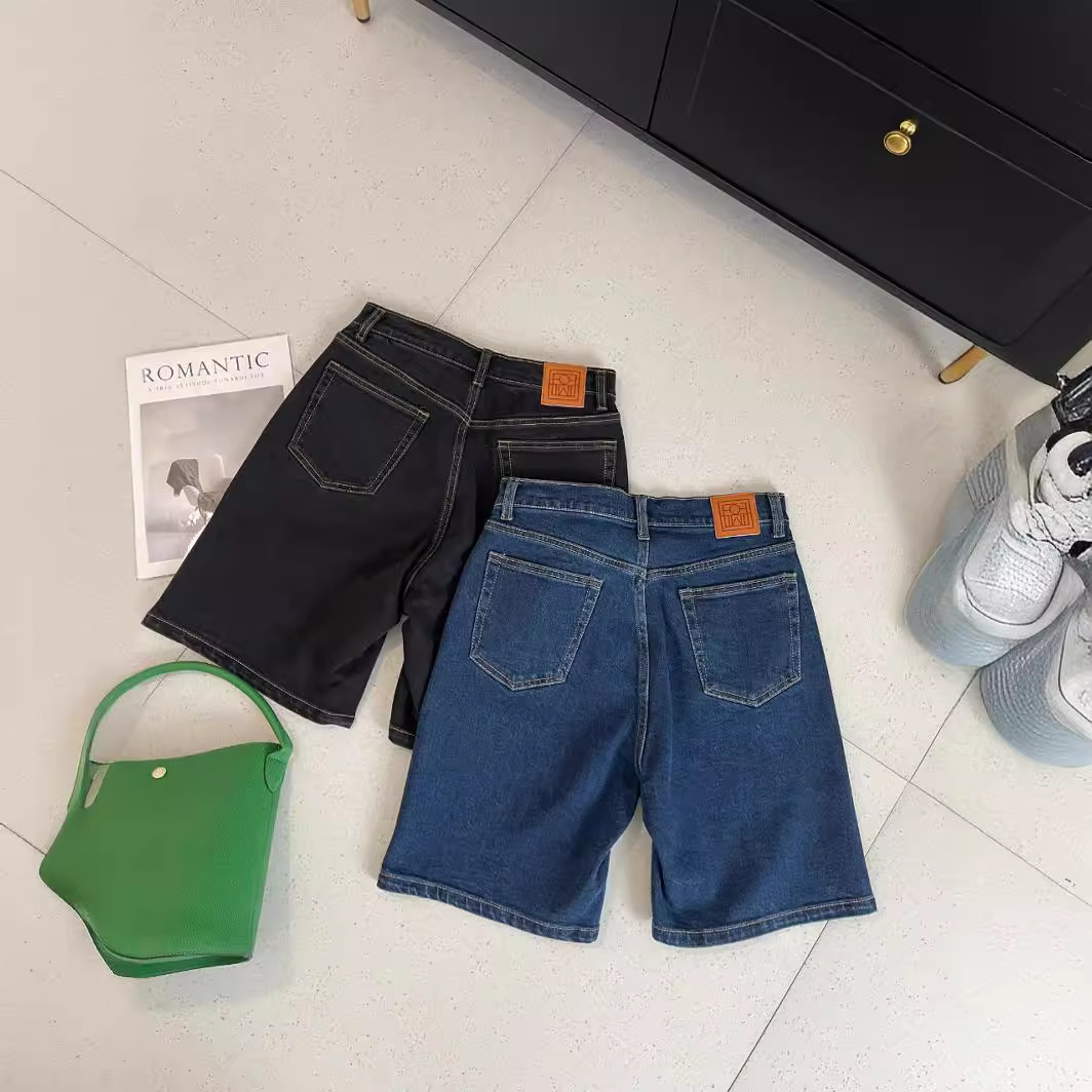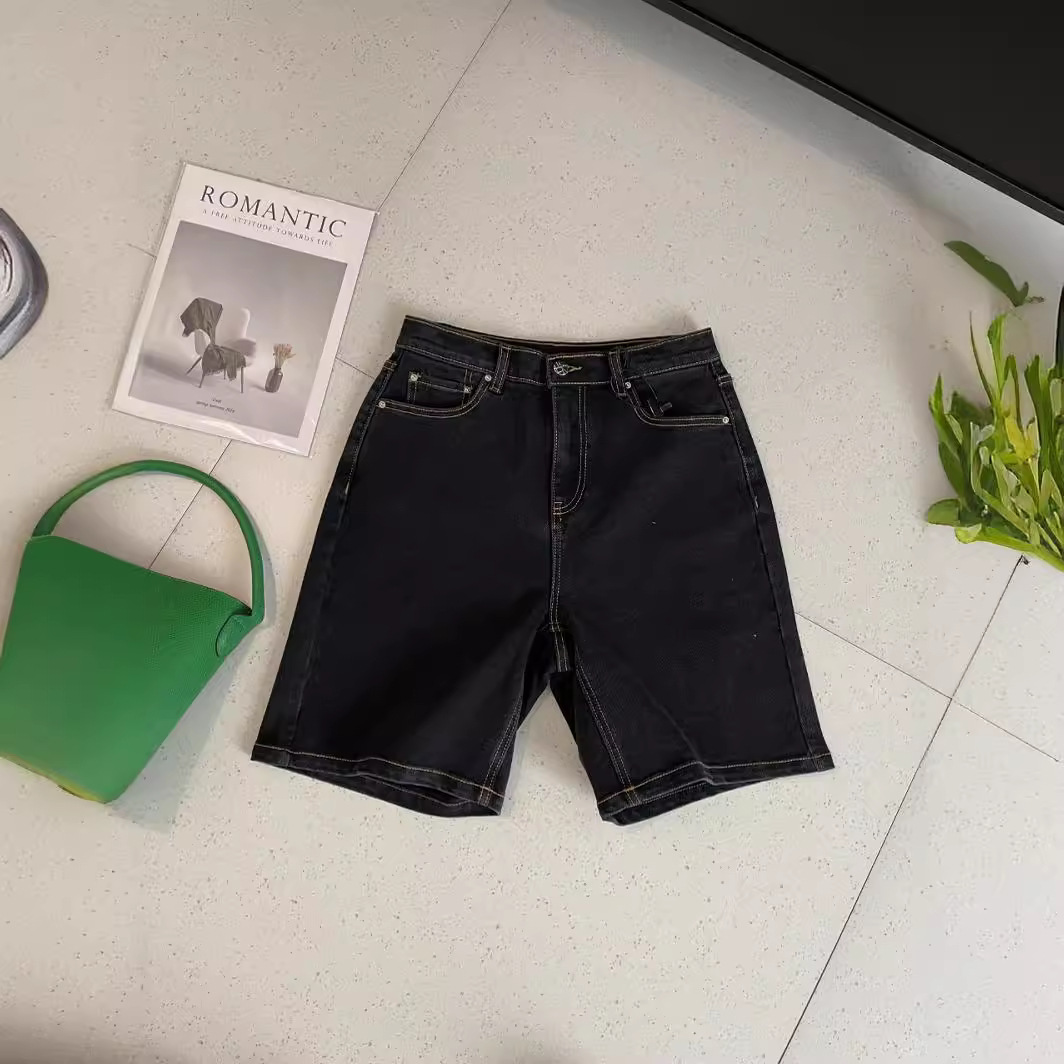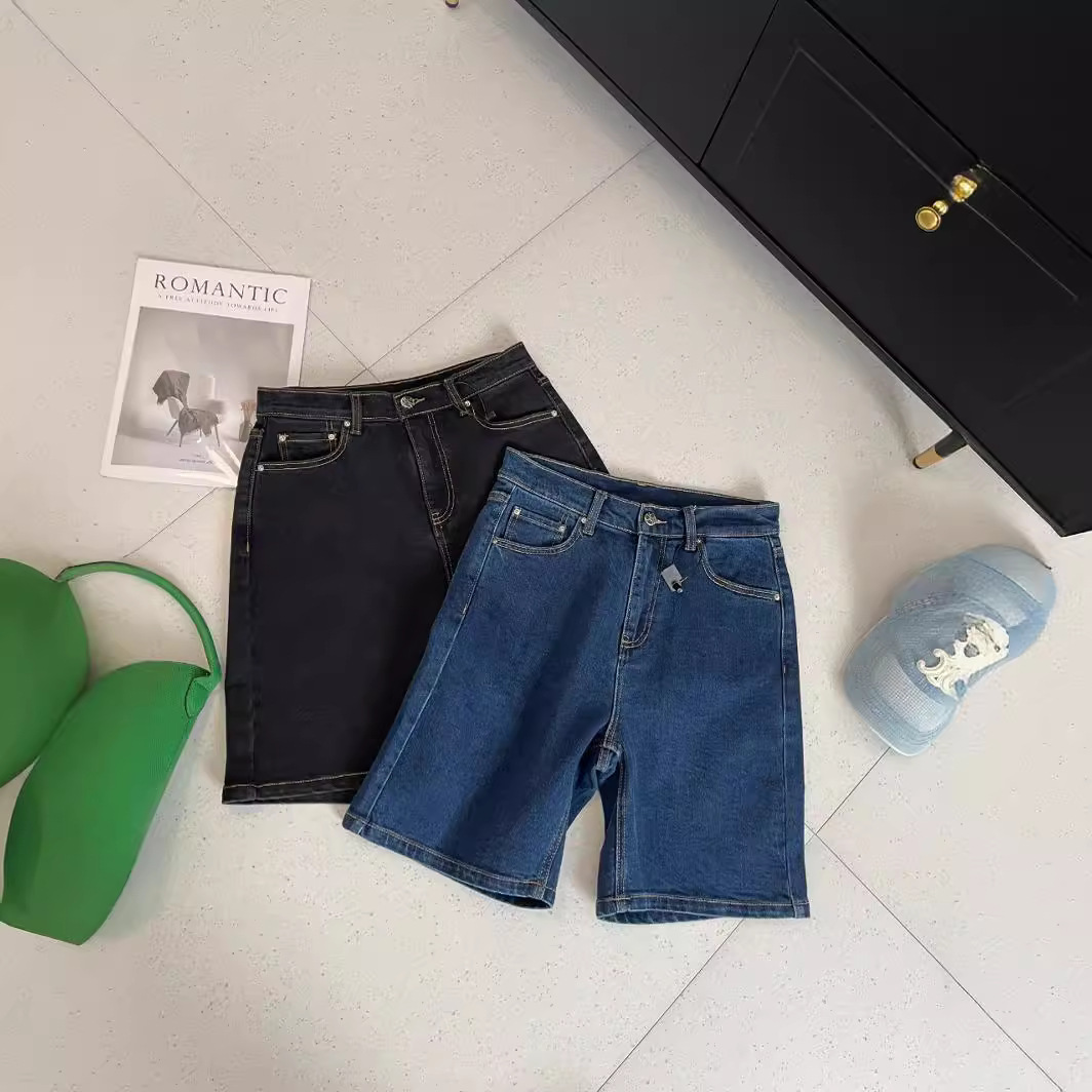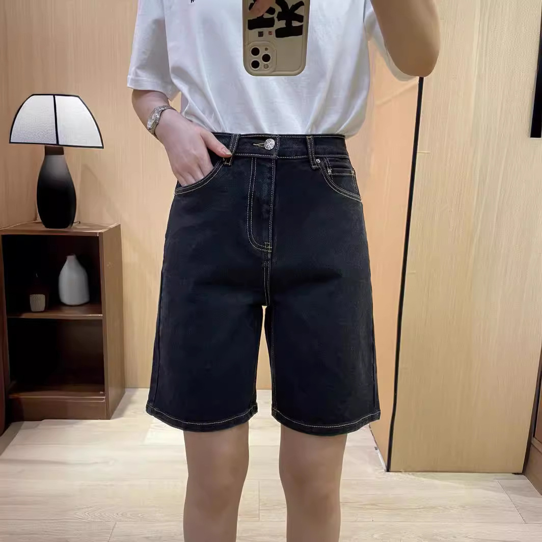 Women’s Straight Five-point High Waist Retro Denim Shorts Summer Slim Look Fashionable Solid Color Mid-length Pants