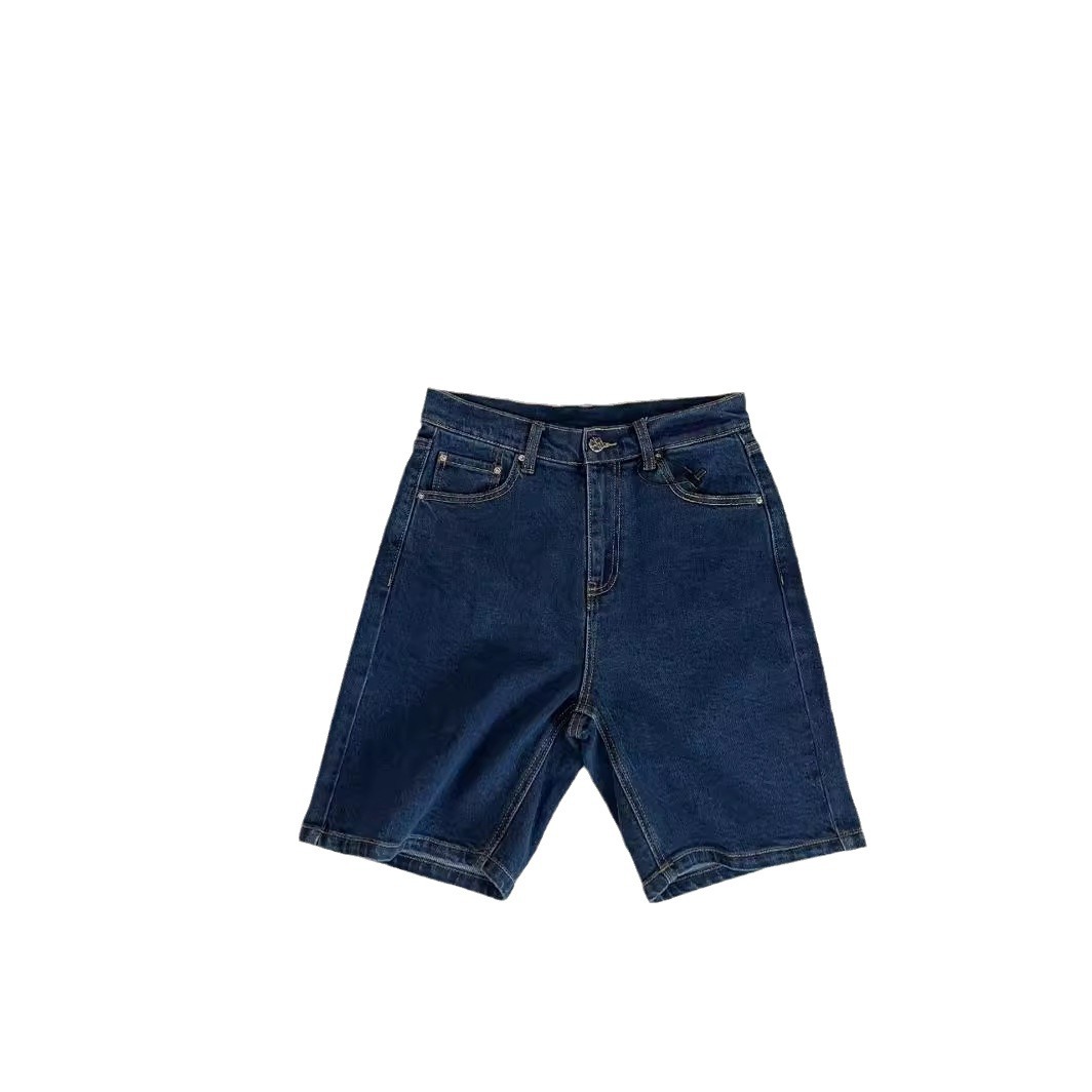 Women's Straight Five-point High Waist Retro Denim Shorts Summer Slim Look Fashionable Solid Color Mid-length Pants