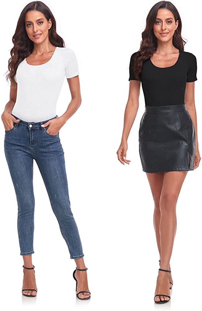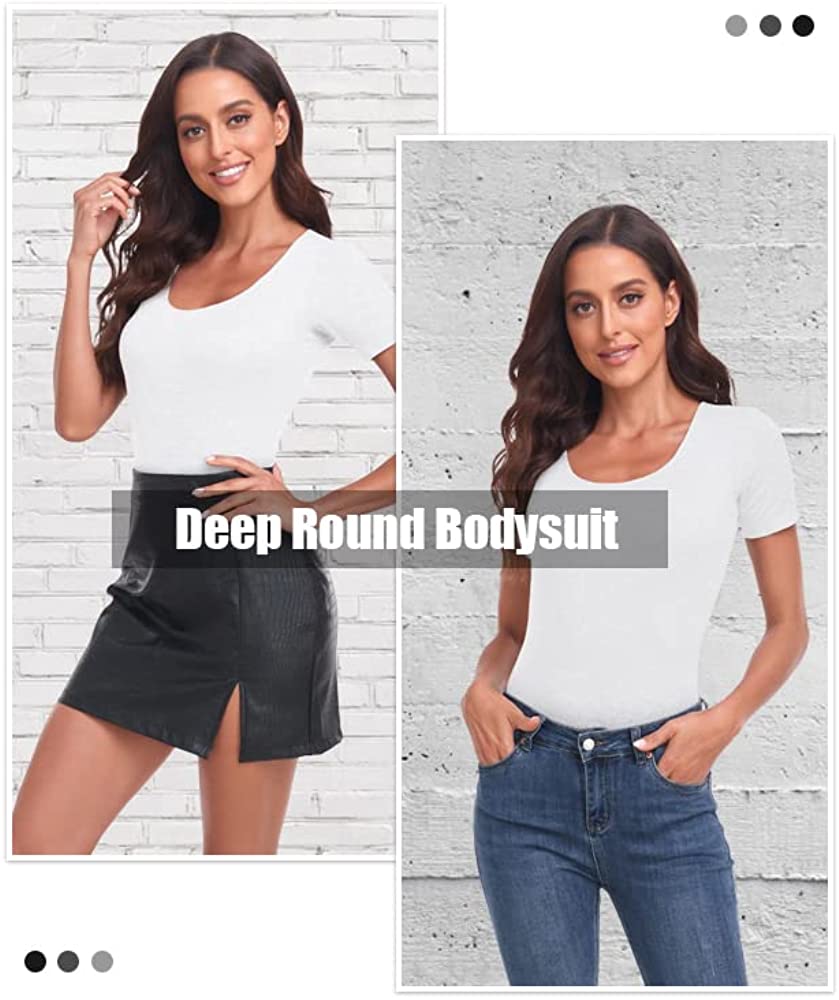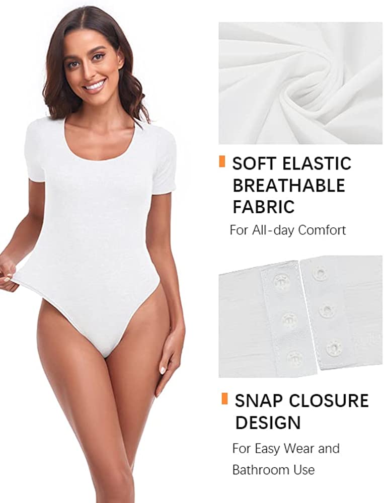 TownCat Women's Round Neck Short Sleeve Bodysuit, Women Sexy Tops Body suit Jumpsuits with Stretchy Clothing