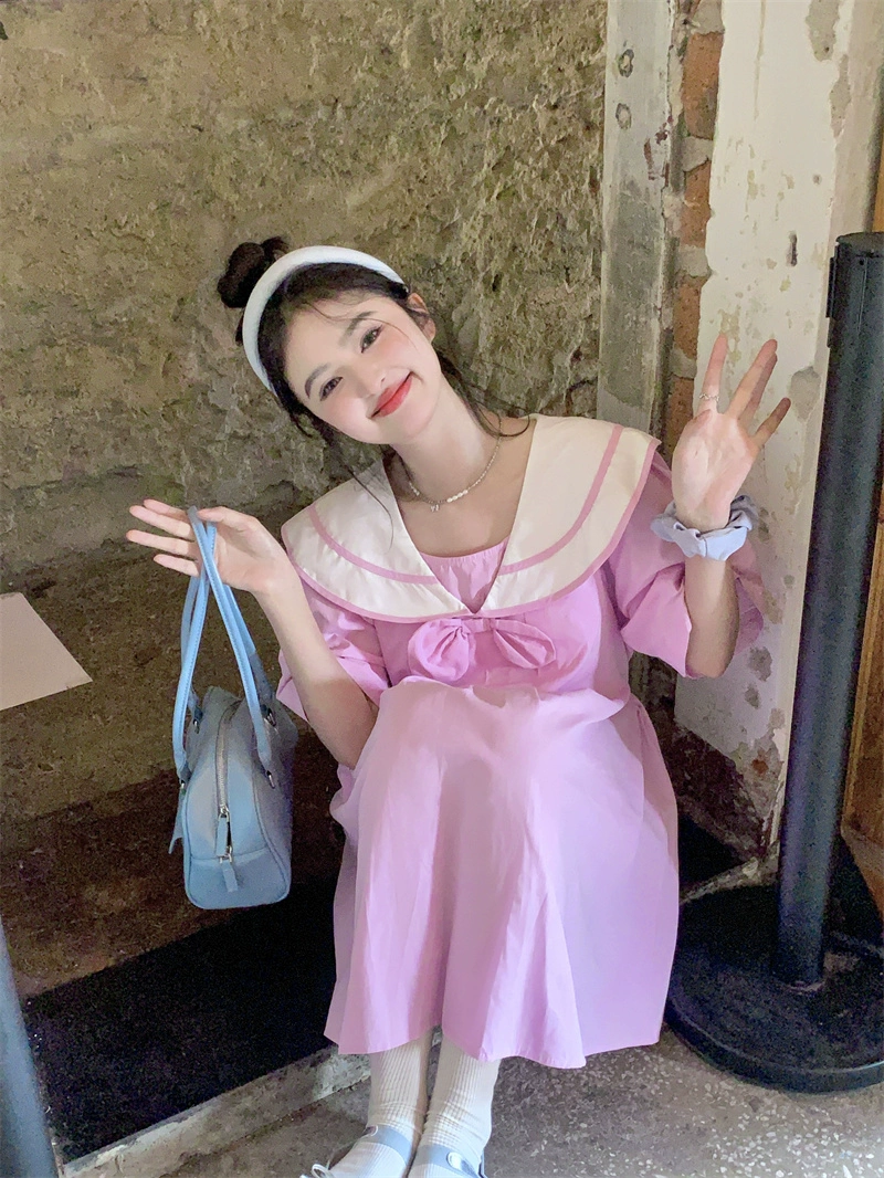 | nameOriginal | Women's summer age-reducing loose dress with bow |