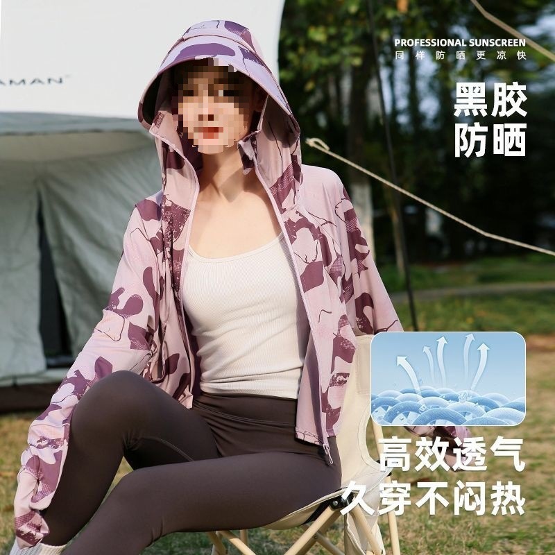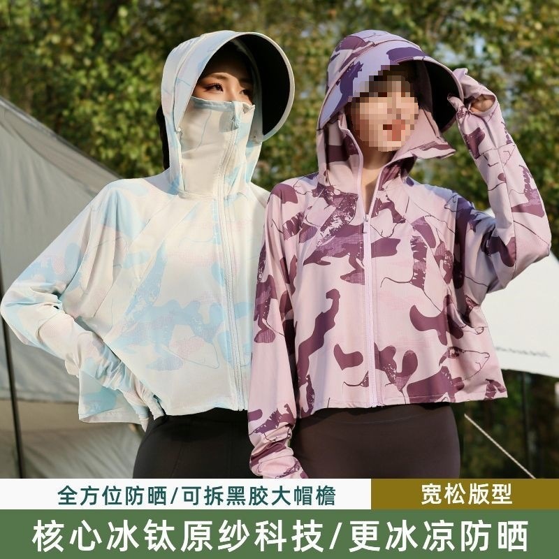 Women’s Summer Anti-UV Removable Black Rubber Hat Brim Ice Silk Cool Outdoor Breathable Loose Thin Sun Protection Clothing