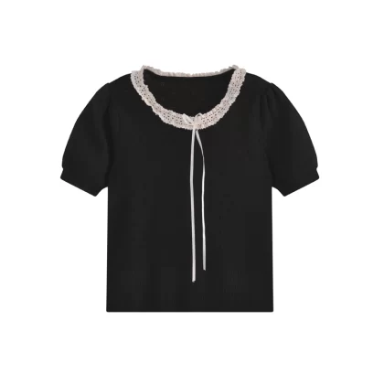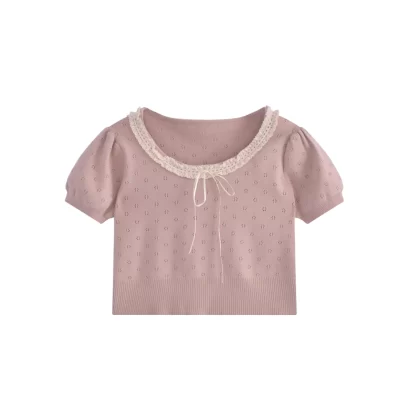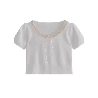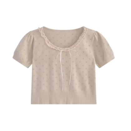 | nameOriginal | Women's summer bow knitted sweater top with puff sleeves |