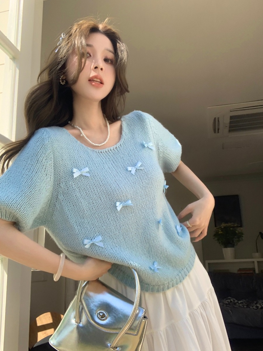 | nameOriginal | Women's Summer Bow Slimming Top Short Sleeve T-Shirt |