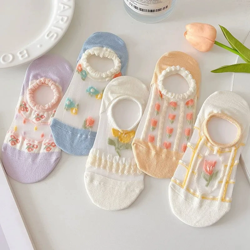 | nameOriginal | Women's Summer Breathable Floral Crystal Silk Socks |