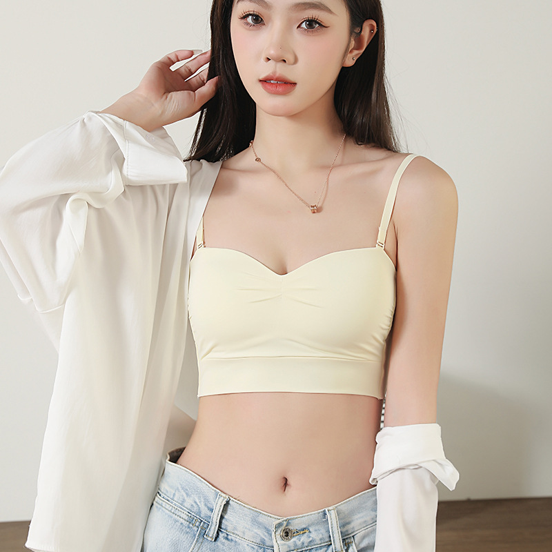 | nameOriginal | Women's summer camisole with chest pad slim-fit underwear V-neck curved pleated undershirt top |