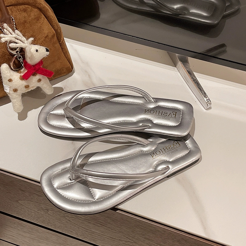 | nameOriginal | Women's summer casual flat non-slip silver flip-flops |