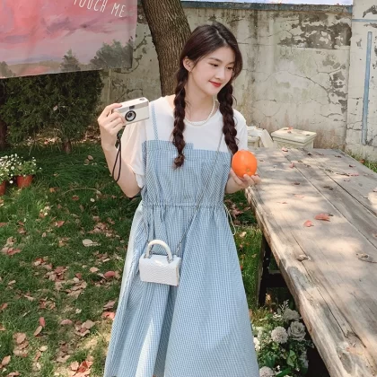 | nameOriginal | Women's summer casual two-piece spliced plaid dress |