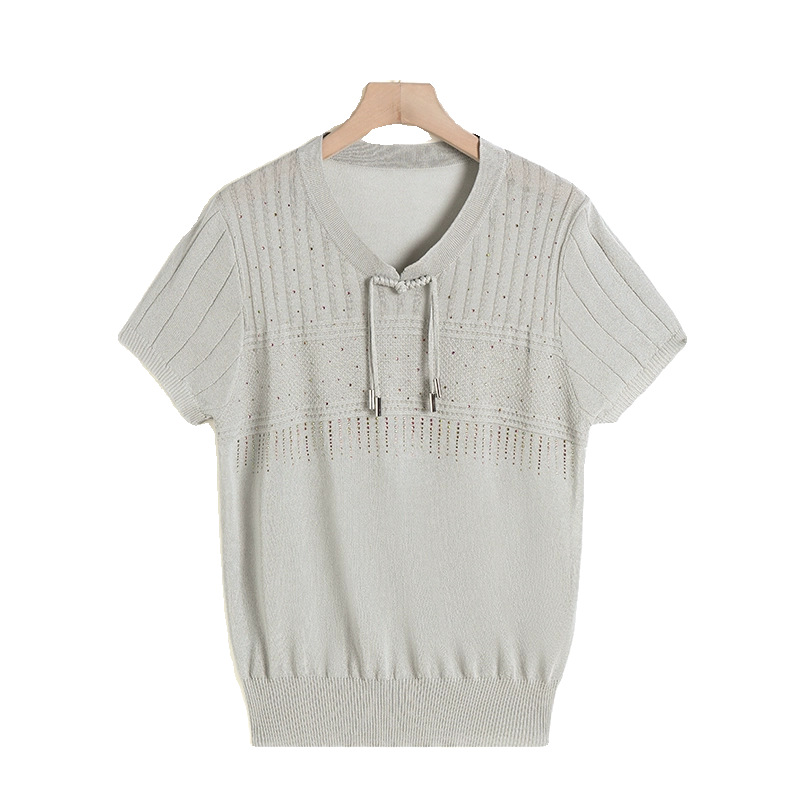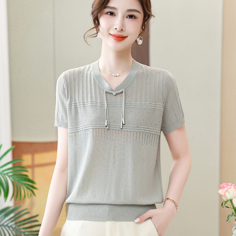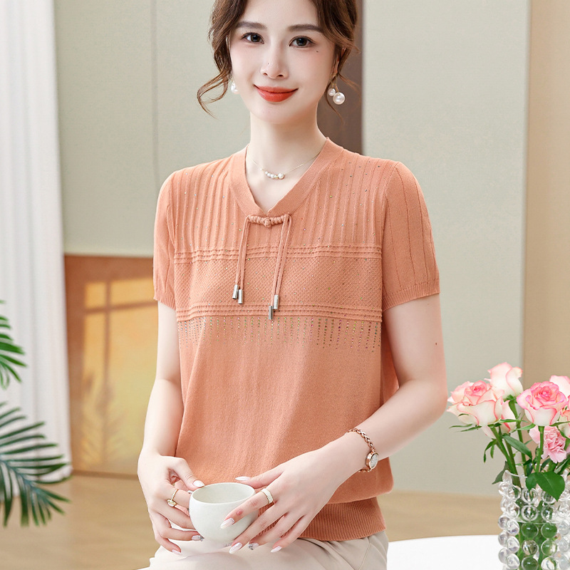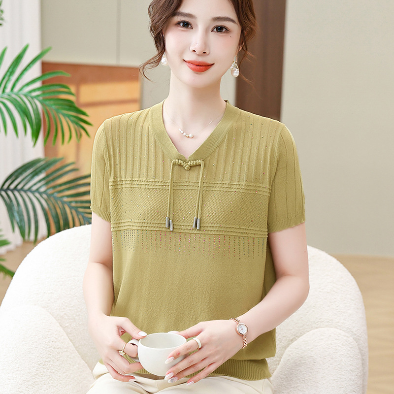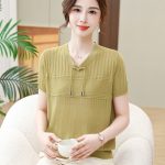 Women’s Summer Clothes National Style Knitted Short-sleeved T-shirt Women’s Women’s Women’s Summer Western Style New Chinese Style Top Ice Silk Small Shirt
