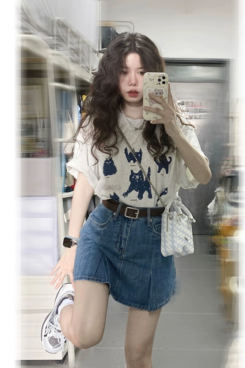 | nameOriginal | Women's Summer Cotton Short Sleeve T-Shirt A-Line Suit Skirt |