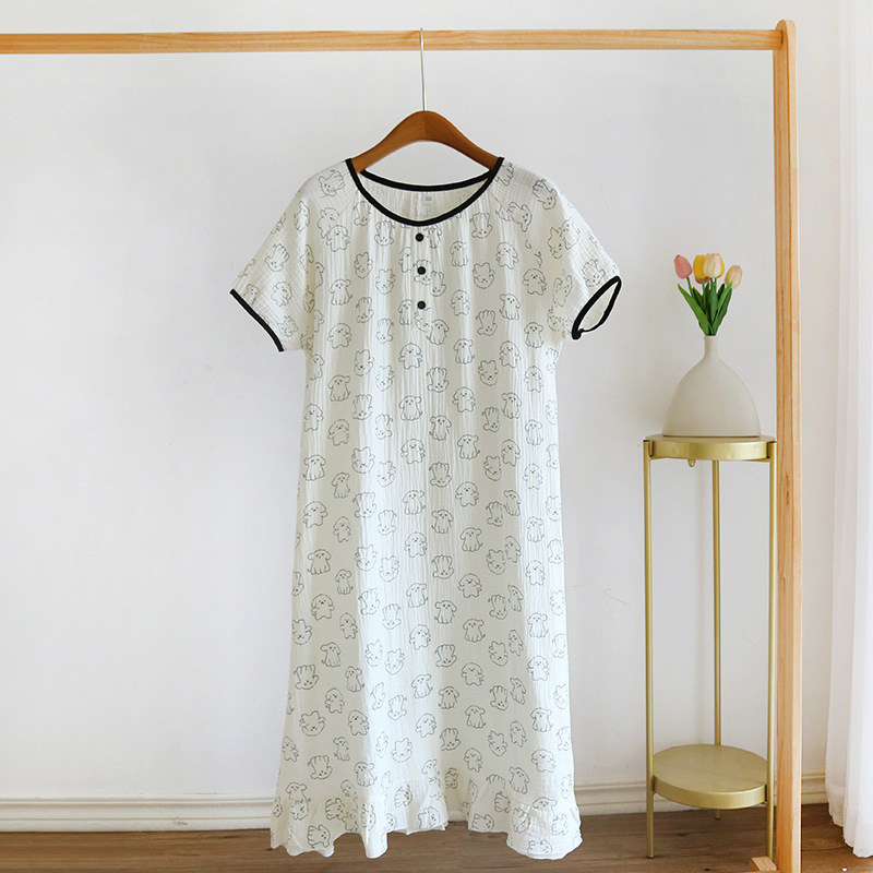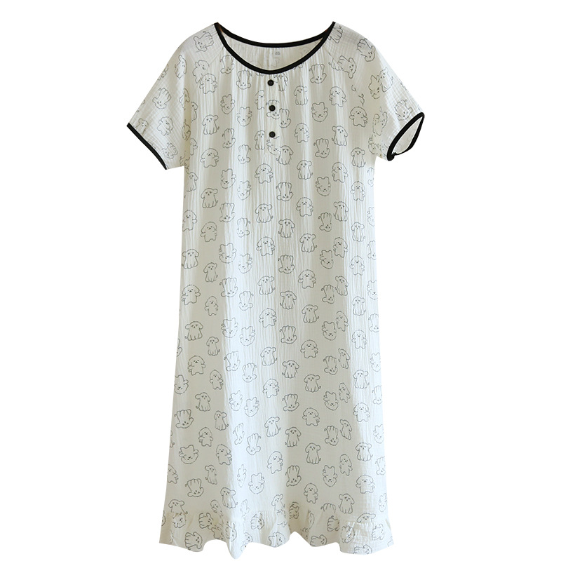 | nameOriginal | Women's Summer Cotton Short-sleeved Pajamas Summer Short-sleeved Mid-length Dress Cute Cartoon Nightdress |