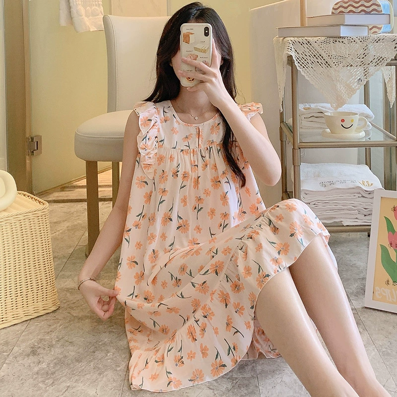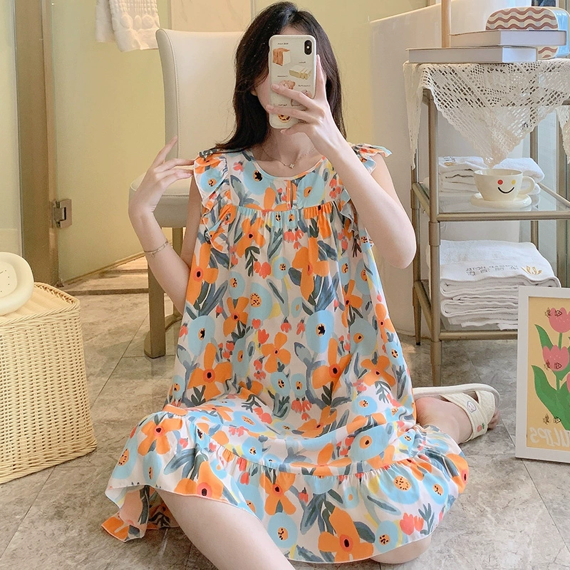 | nameOriginal | Women's summer ethnic style artificial cotton can be worn outside large size nightgown |