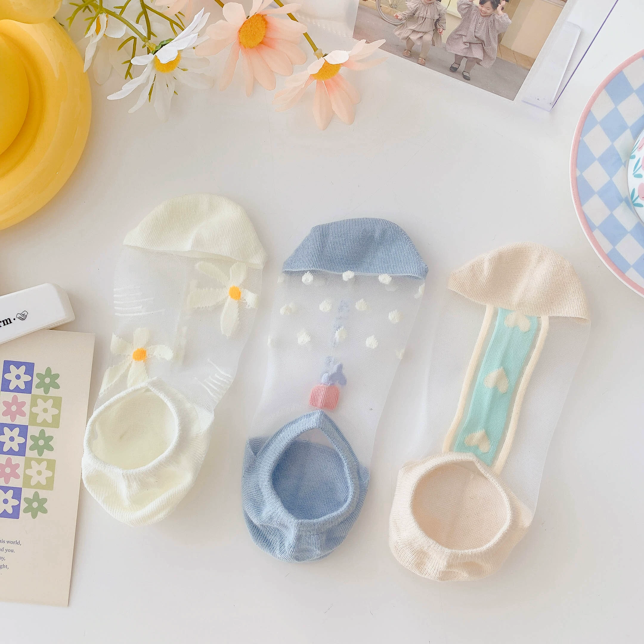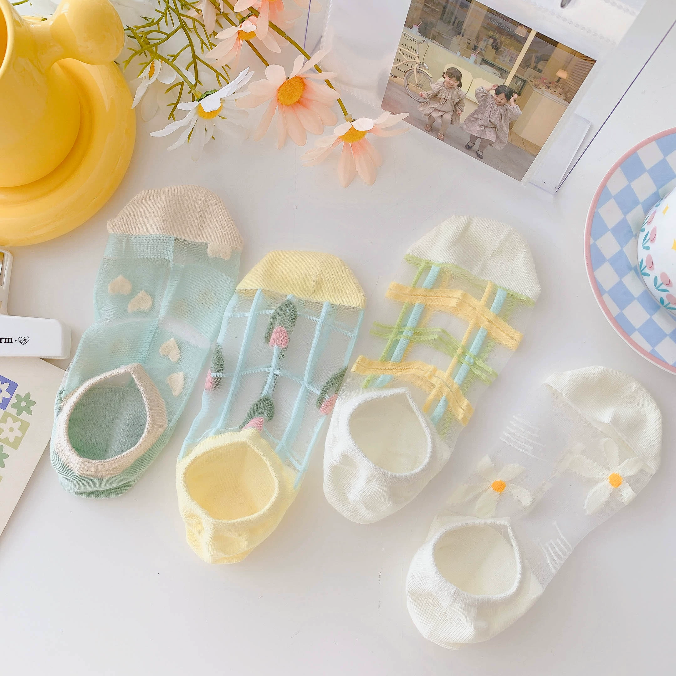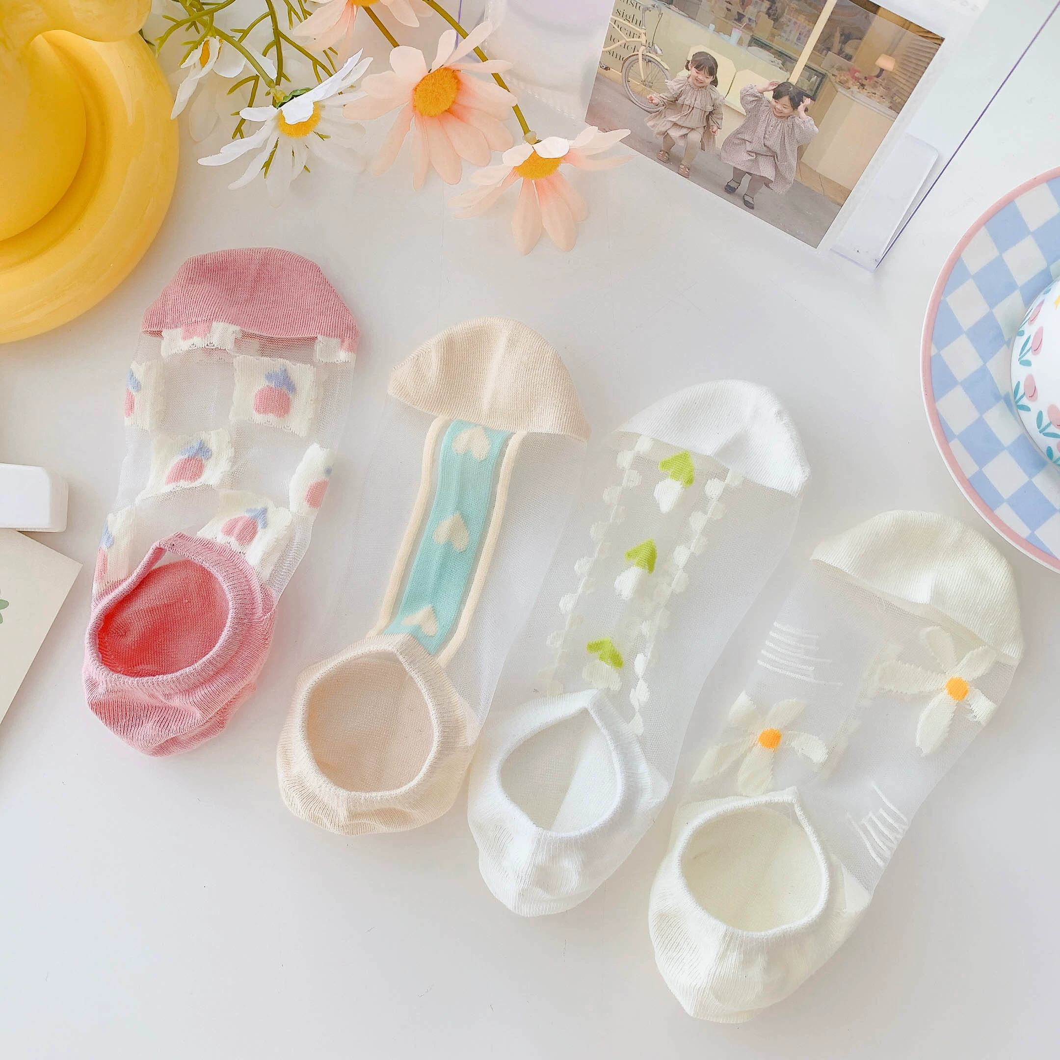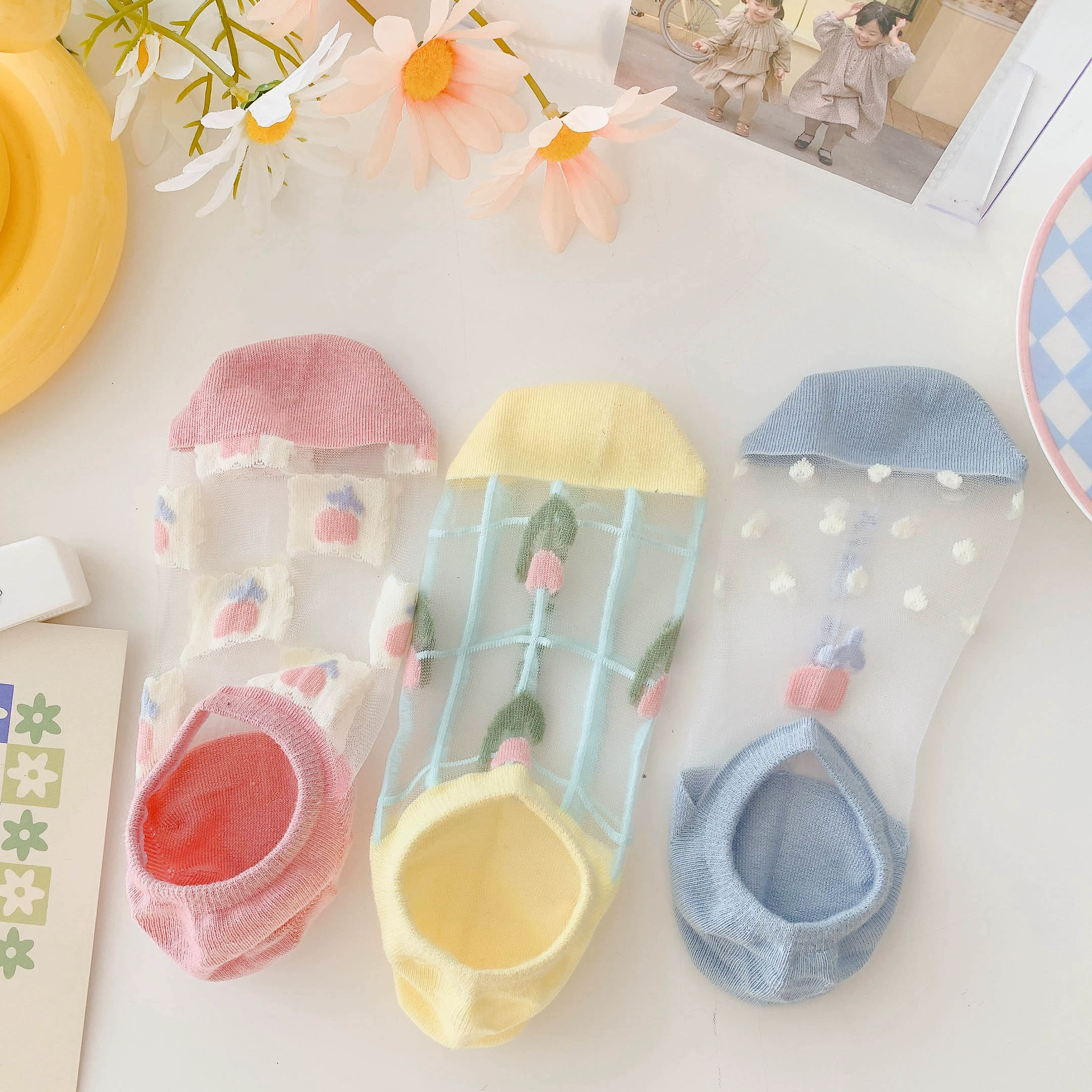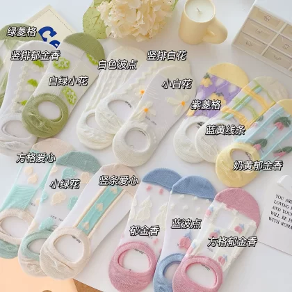 Women’s Summer Ins Trendy Silicone Anti-Slip Glass Thread Socks