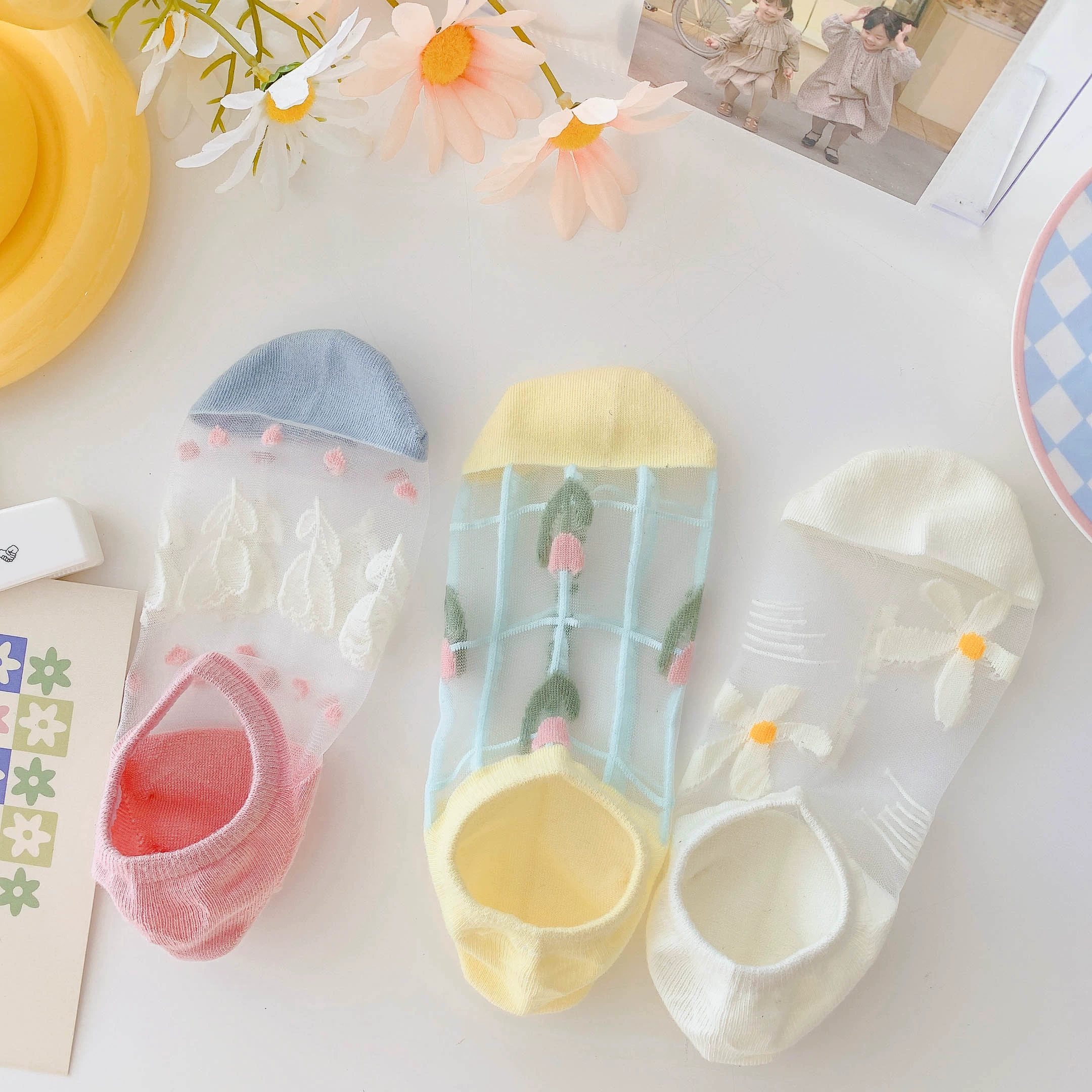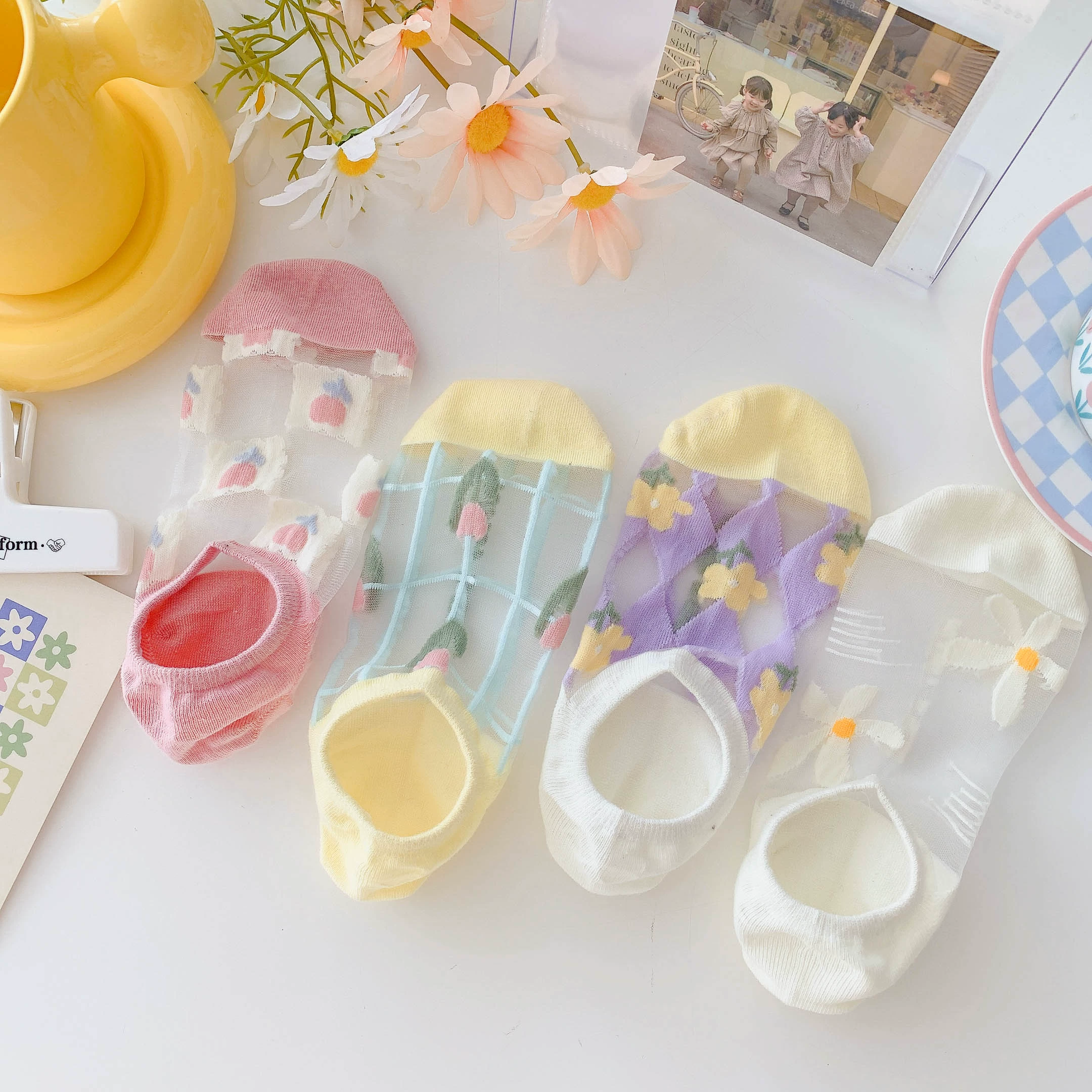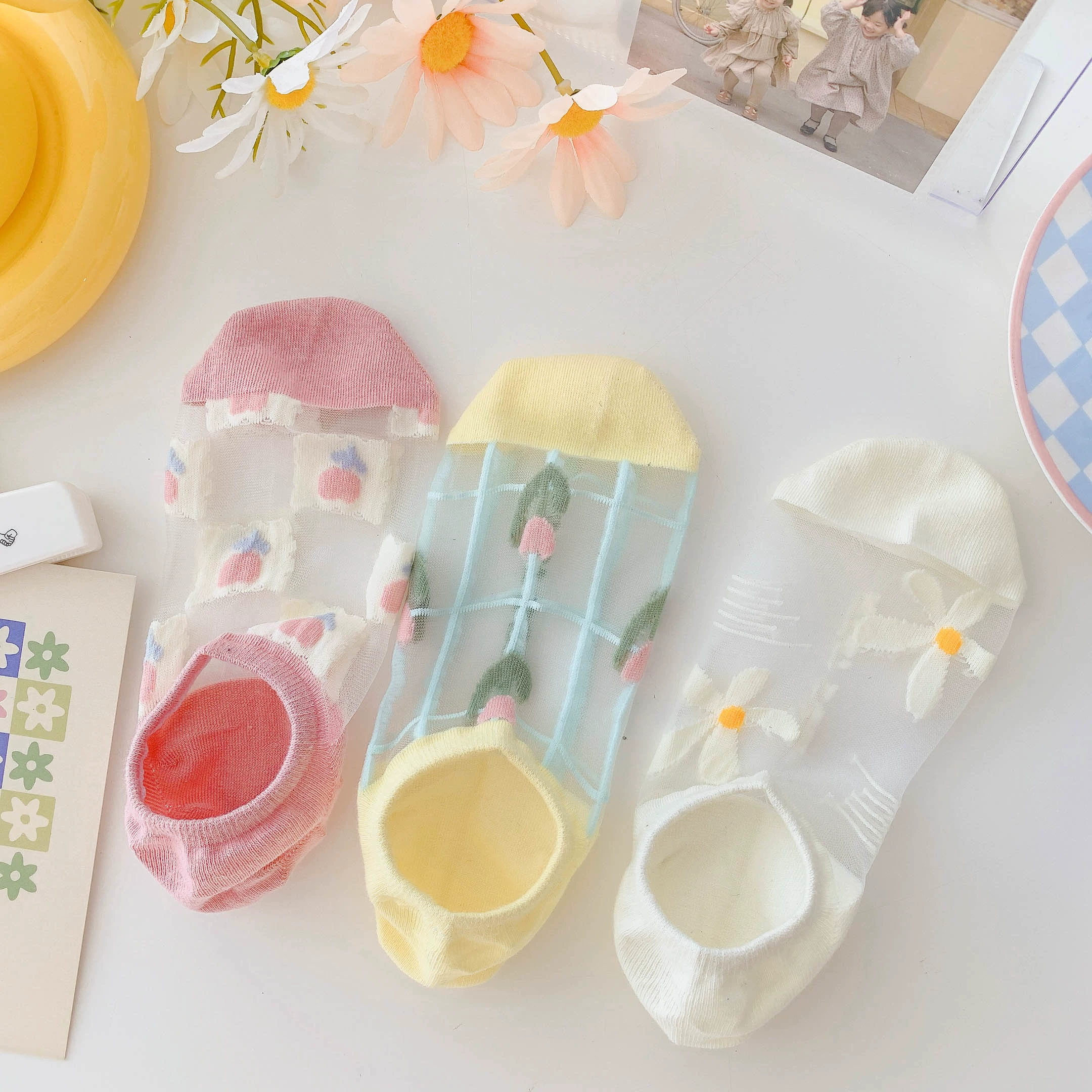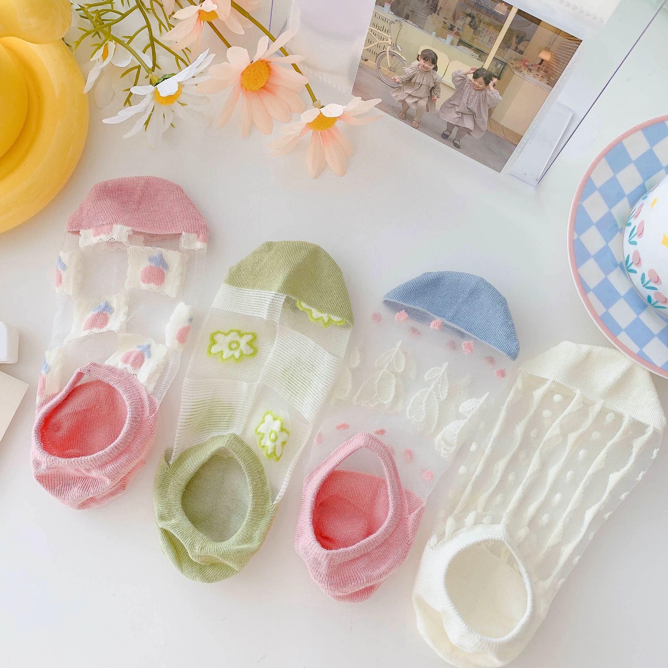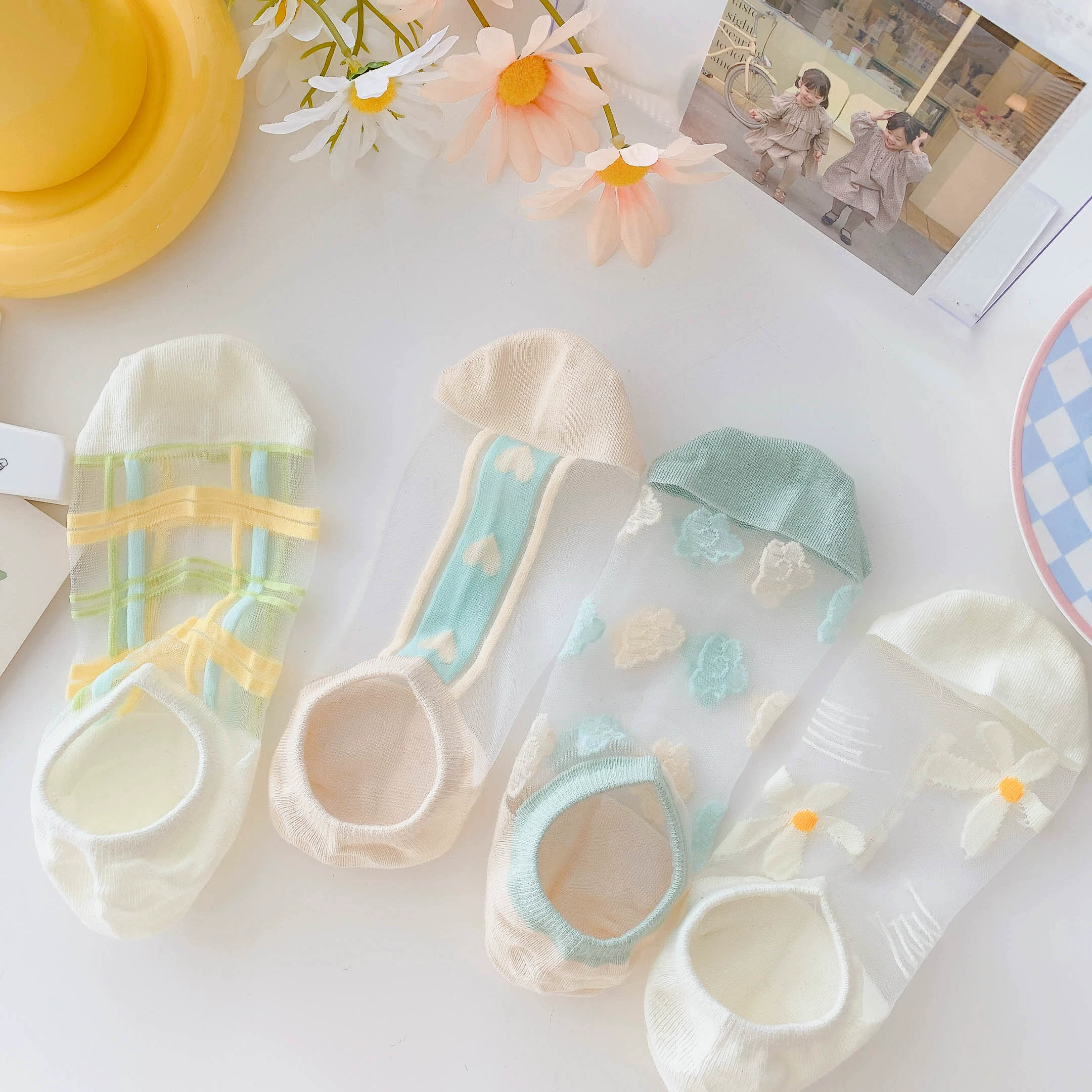 Women’s Summer Ins Trendy Silicone Anti-Slip Glass Thread Socks