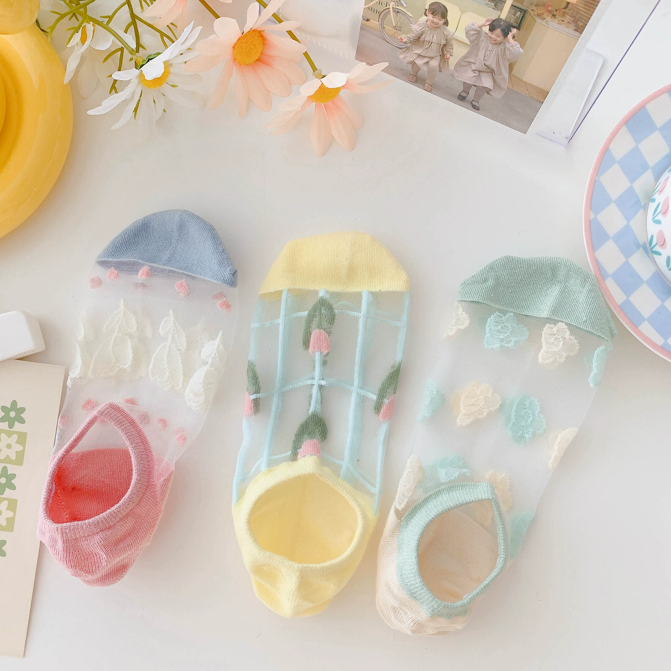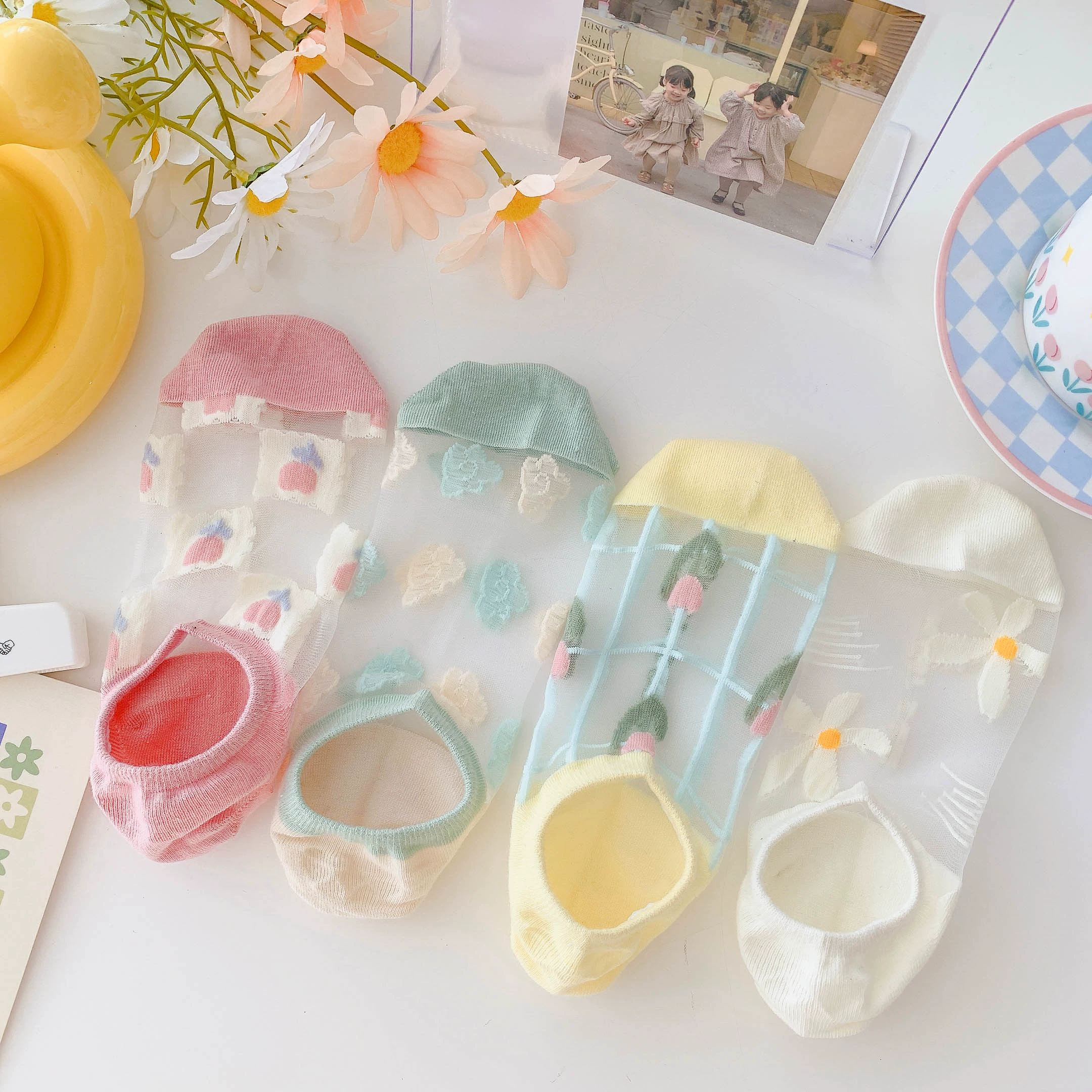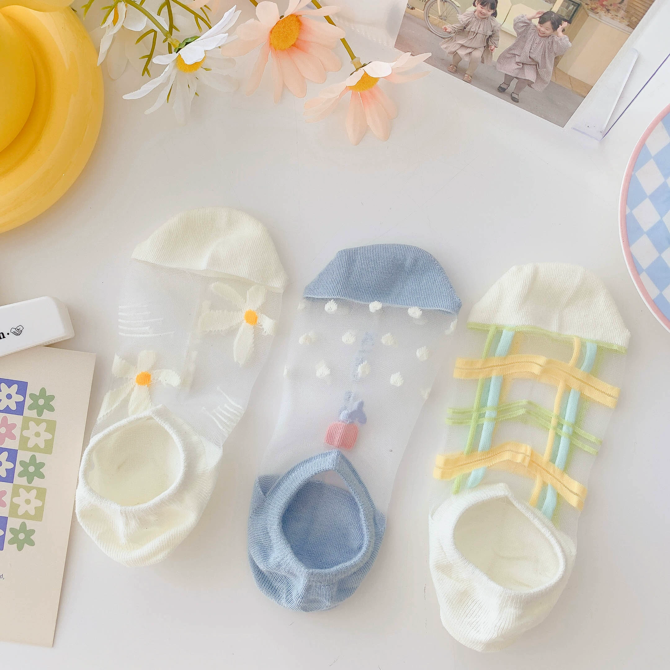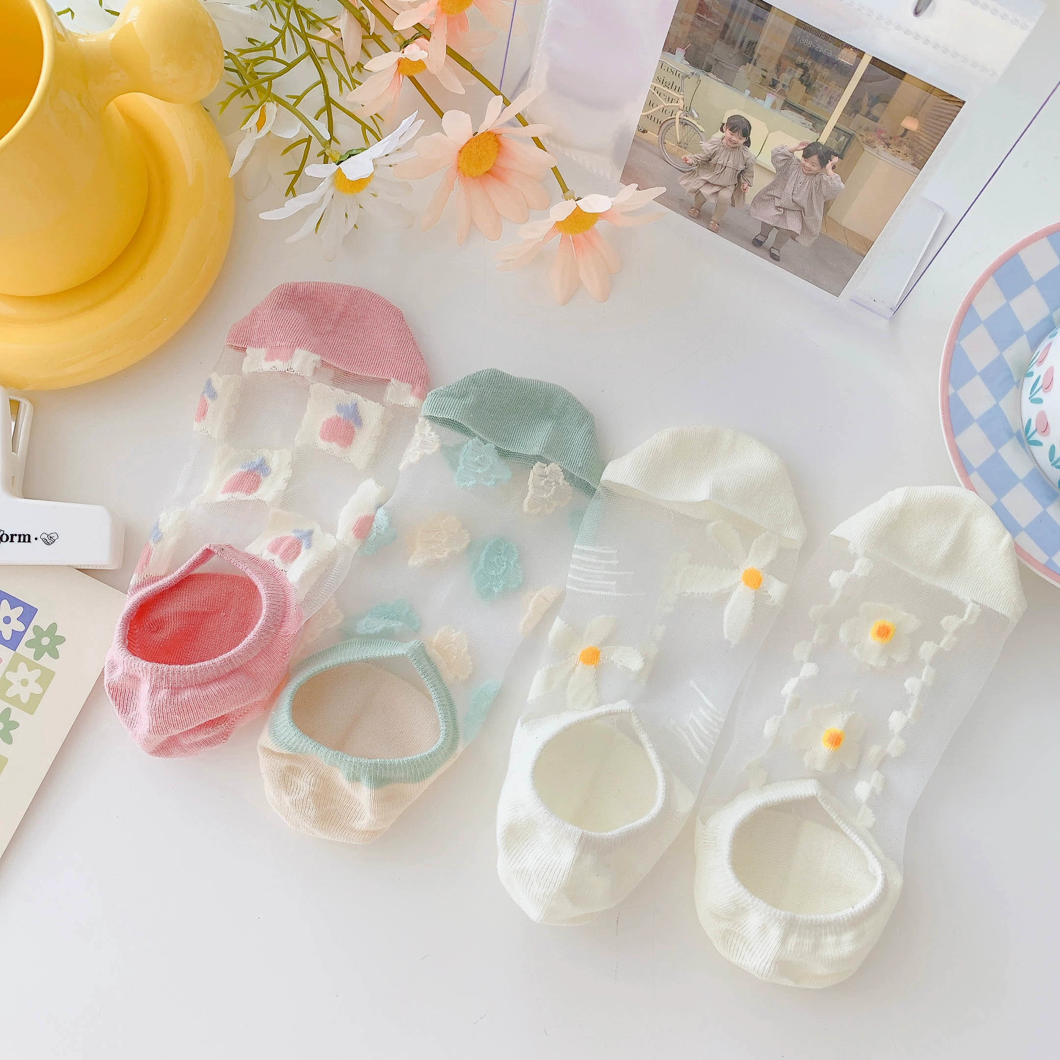 Women’s Summer Ins Trendy Silicone Anti-Slip Glass Thread Socks