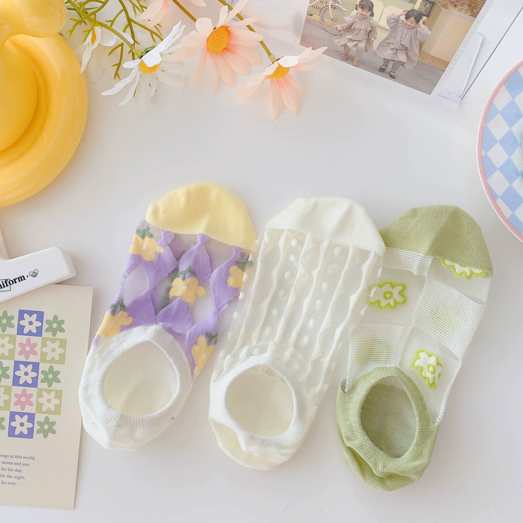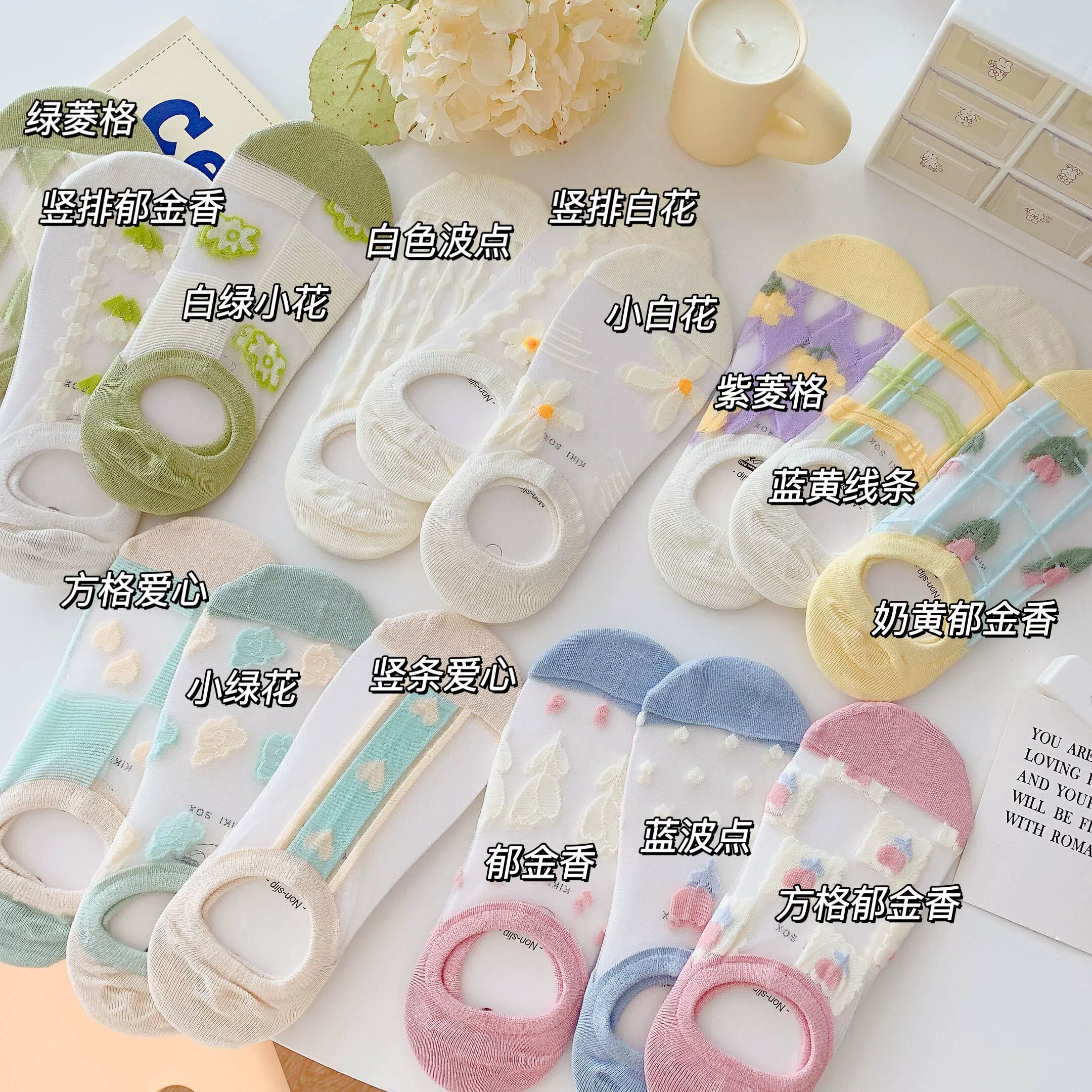 Women's Summer Ins Trendy Silicone Anti-Slip Glass Thread Socks