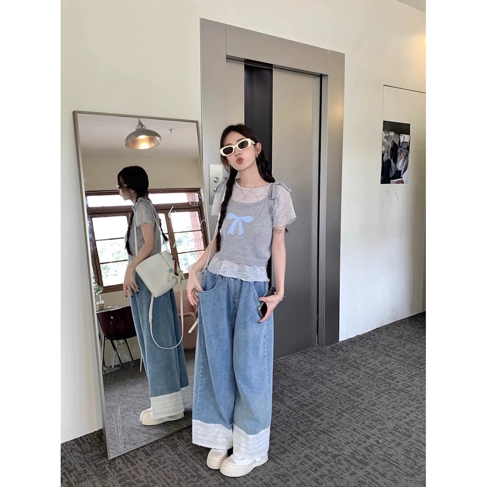 | nameOriginal | Women's summer layered short-sleeved T-shirts and jeans with bows |