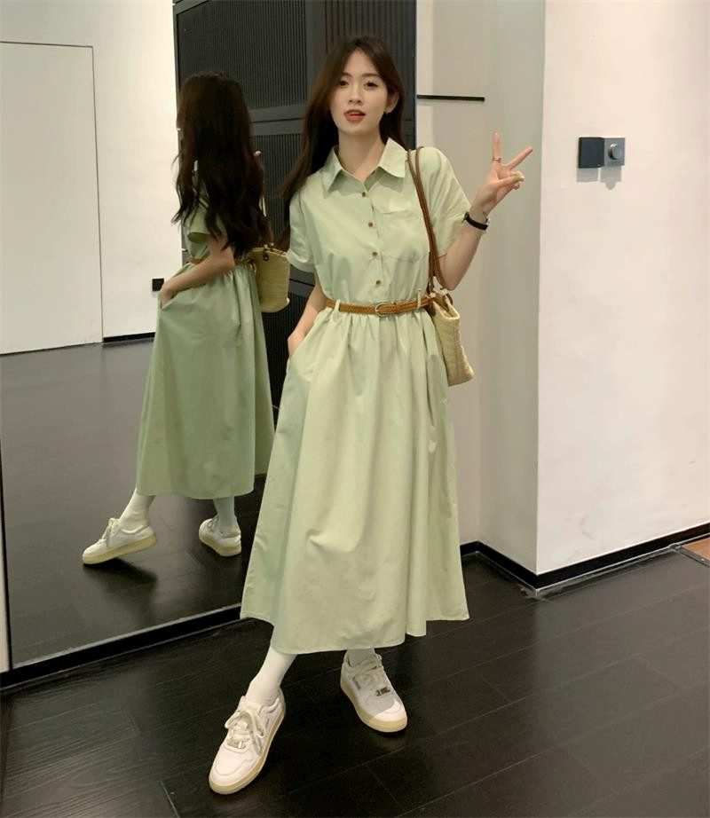 Women’s summer niche chic A-line over-the-knee shirt dress