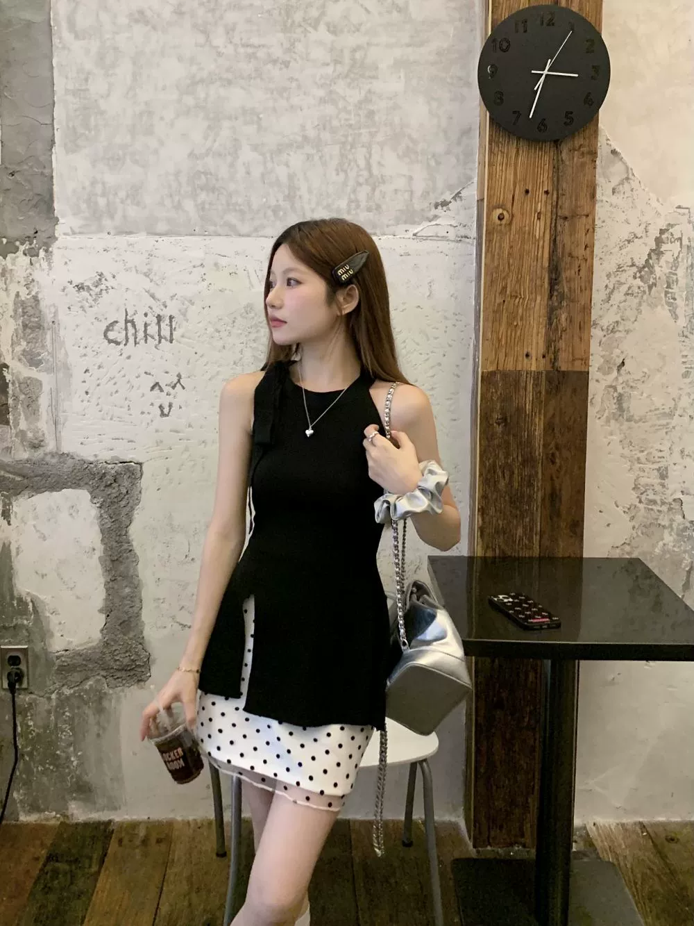 | nameOriginal | Women's summer polka dot skirt with slit and bow |