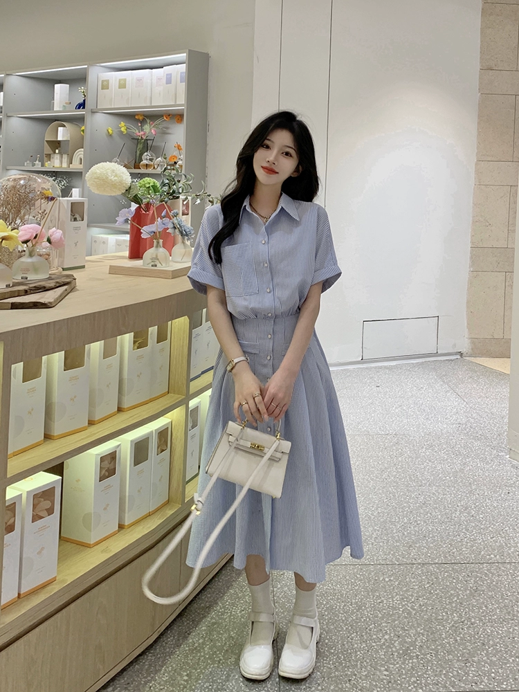 Women’s summer polo collar striped fat mm short-sleeved shirt