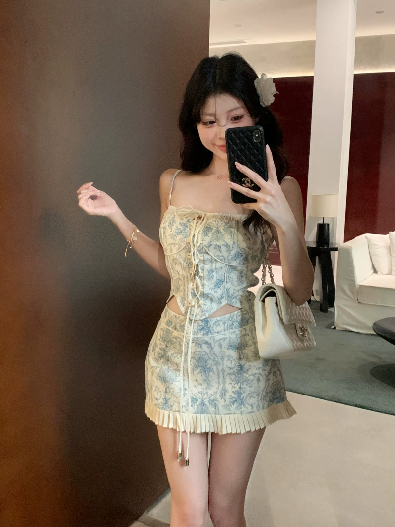 | nameOriginal | Women's summer retro vest with hip-covering skirt and small suspenders |
