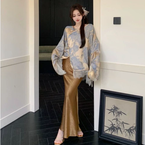 | nameOriginal | Women's summer satin fishtail skirt two-piece lace set |
