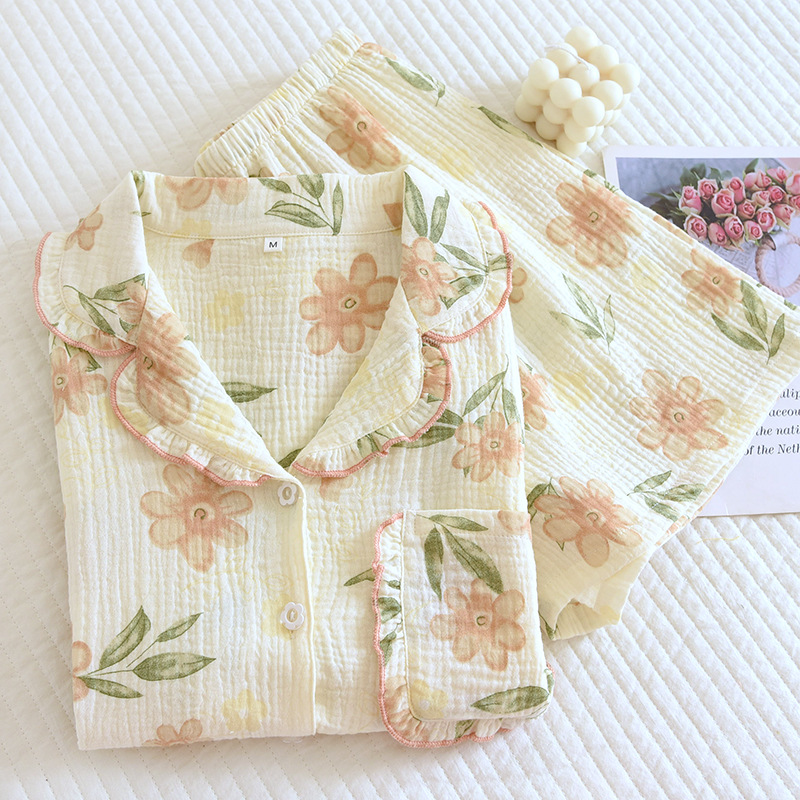 | nameOriginal | Women's Summer Short Sleeve Cotton Yarn Pajamas 2023 New Crepe Cotton Loose Home Suit |