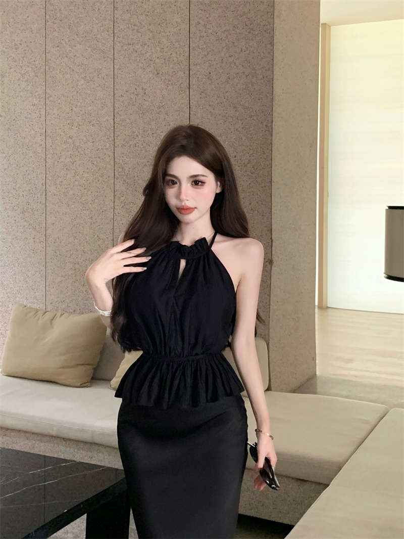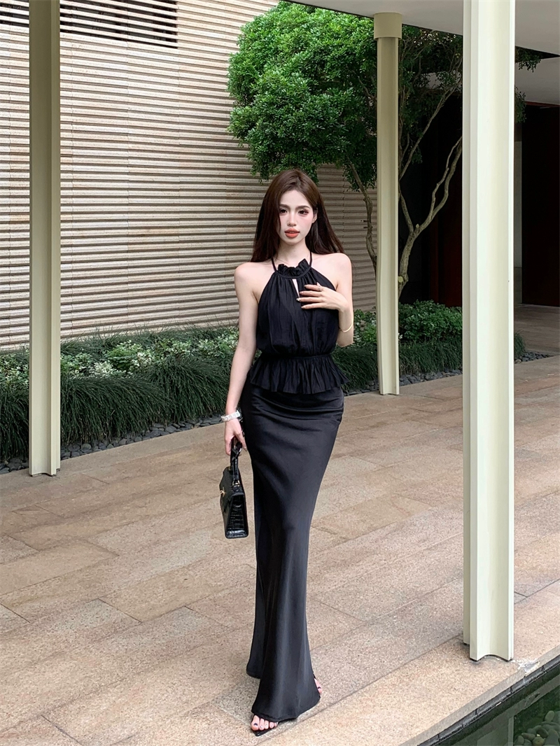 | nameOriginal | Women's summer slim-fitting pleated temperament backless halter neck strap |