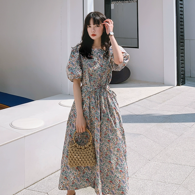 | nameOriginal | Women's Summer Slim Puff Sleeve Oil Painting Dress Platycodon |