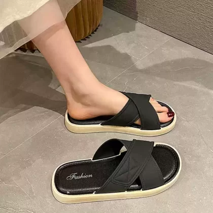 Women's summer slippers with shoddy texture, soft-soled non-slip casual home shoes, 2024 new beach sandals