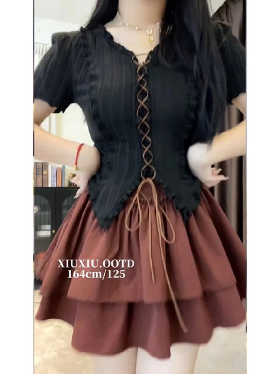 | nameOriginal | Women's summer strappy ruffle cake fashion set |
