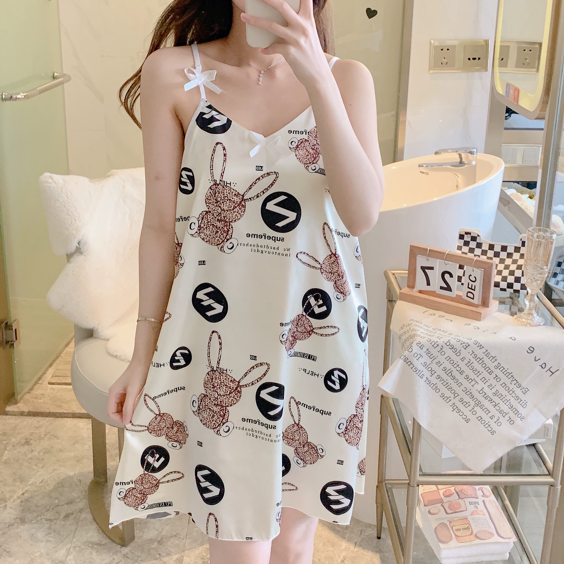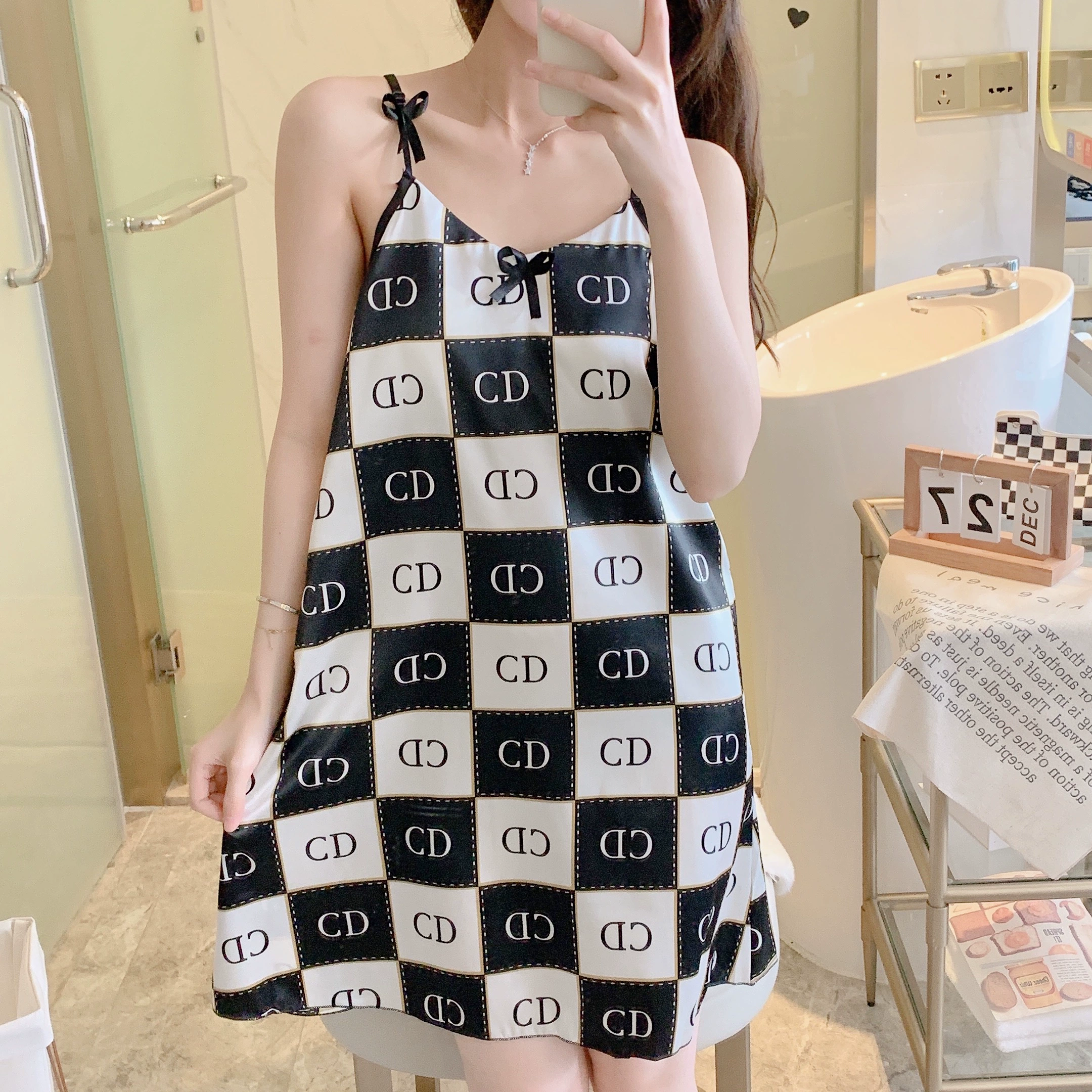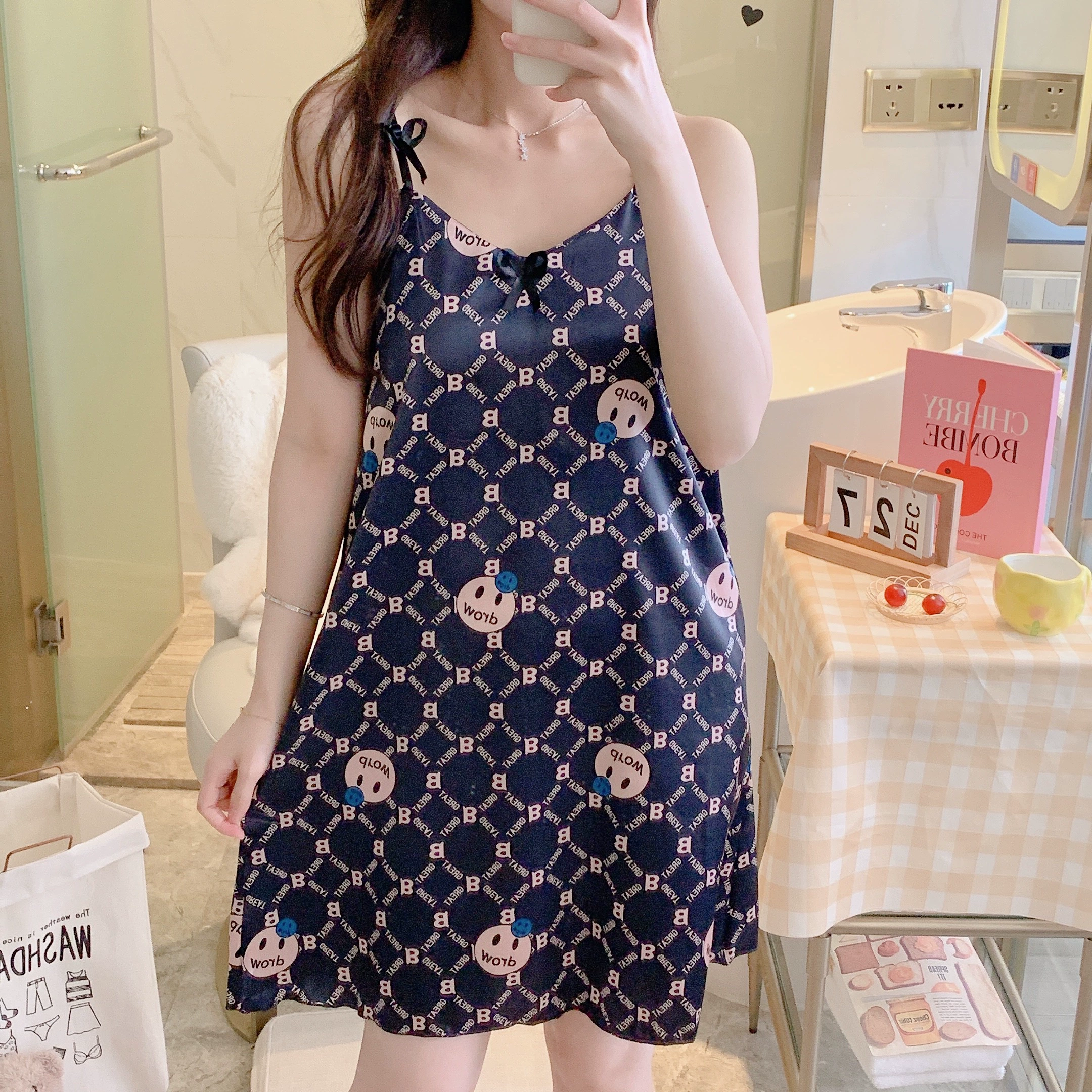 | nameOriginal | Women's summer sweet and sexy 2022 new high-end home wear pajamas with chest pad and suspenders ice silk nightgown |