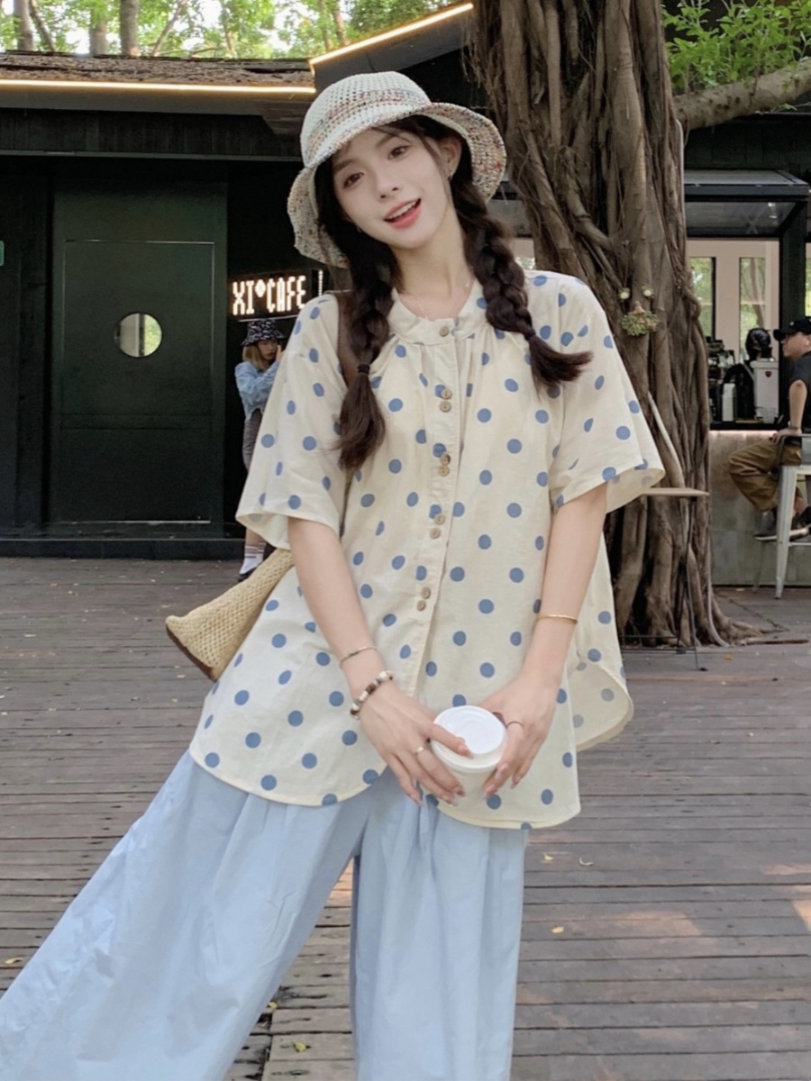 | nameOriginal | Women's Summer Sweet Polka Dot High Waist Slimming Short Sleeves |