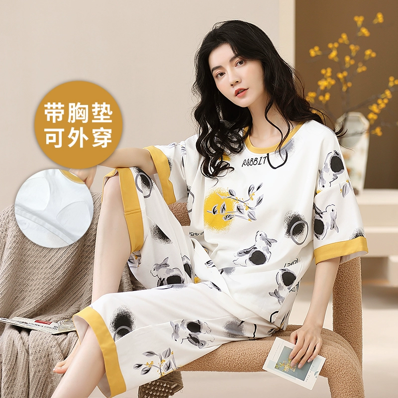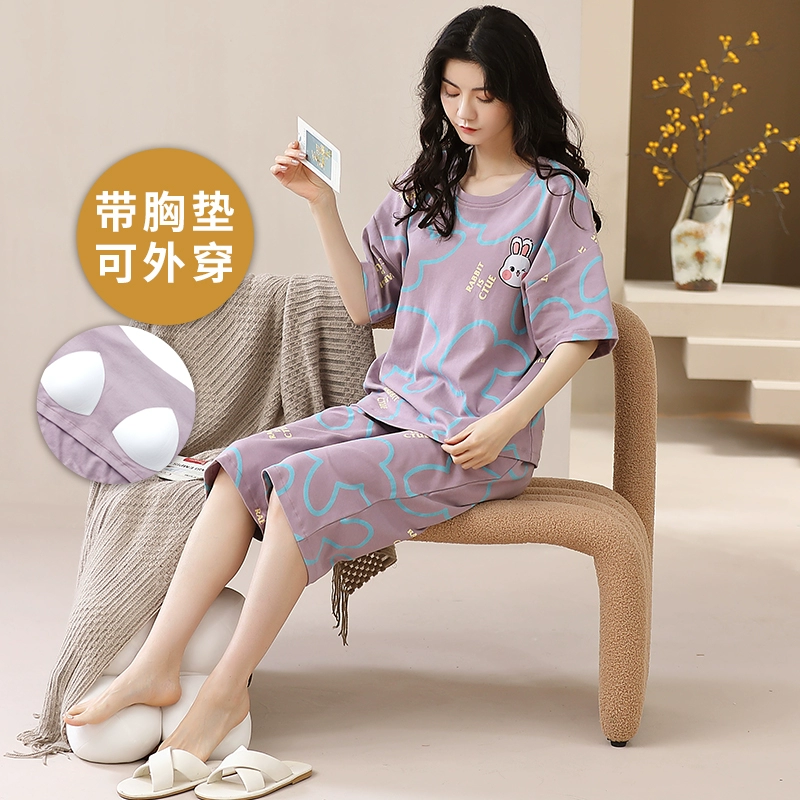 | nameOriginal | Women's summer thin all-in-one pure cotton short-sleeved pajamas with breast pads, large size, can be worn outside, spring and autumn Korean style home wear set |