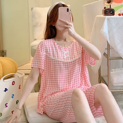 | nameOriginal | Women's summer thin pajamas Japanese style plaid cotton silk |