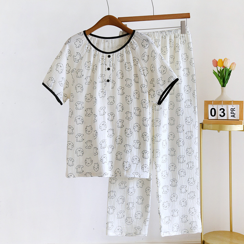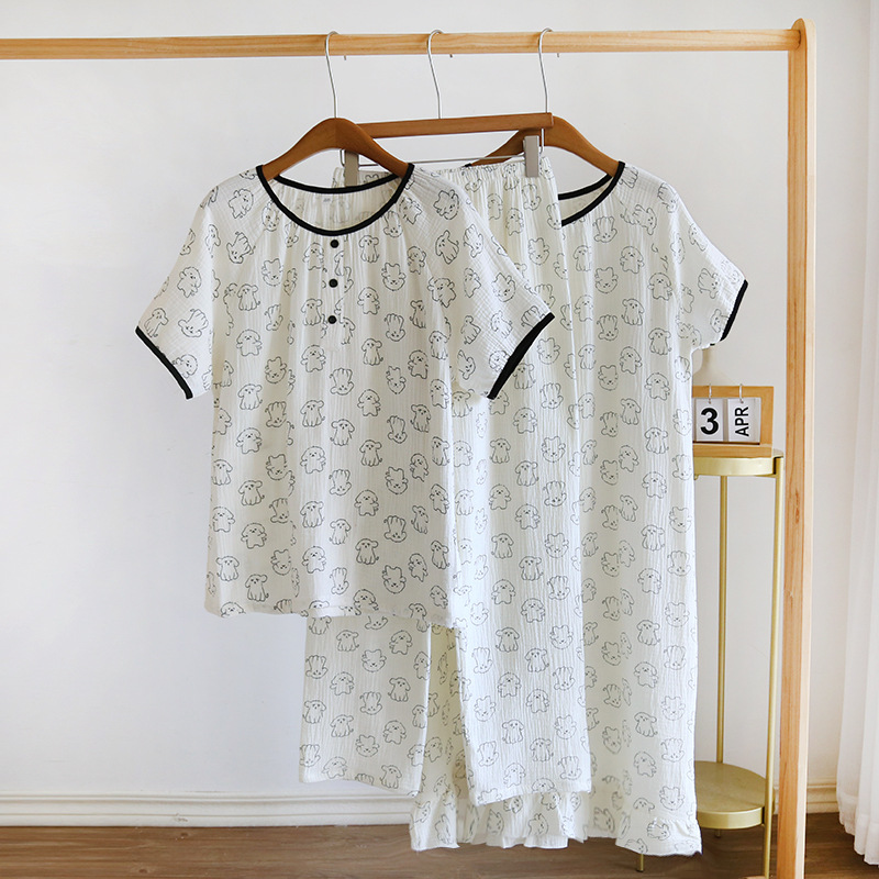 | nameOriginal | Women's summer thin short-sleeved pajamas pure cotton cute pullover cartoon home wear suit |