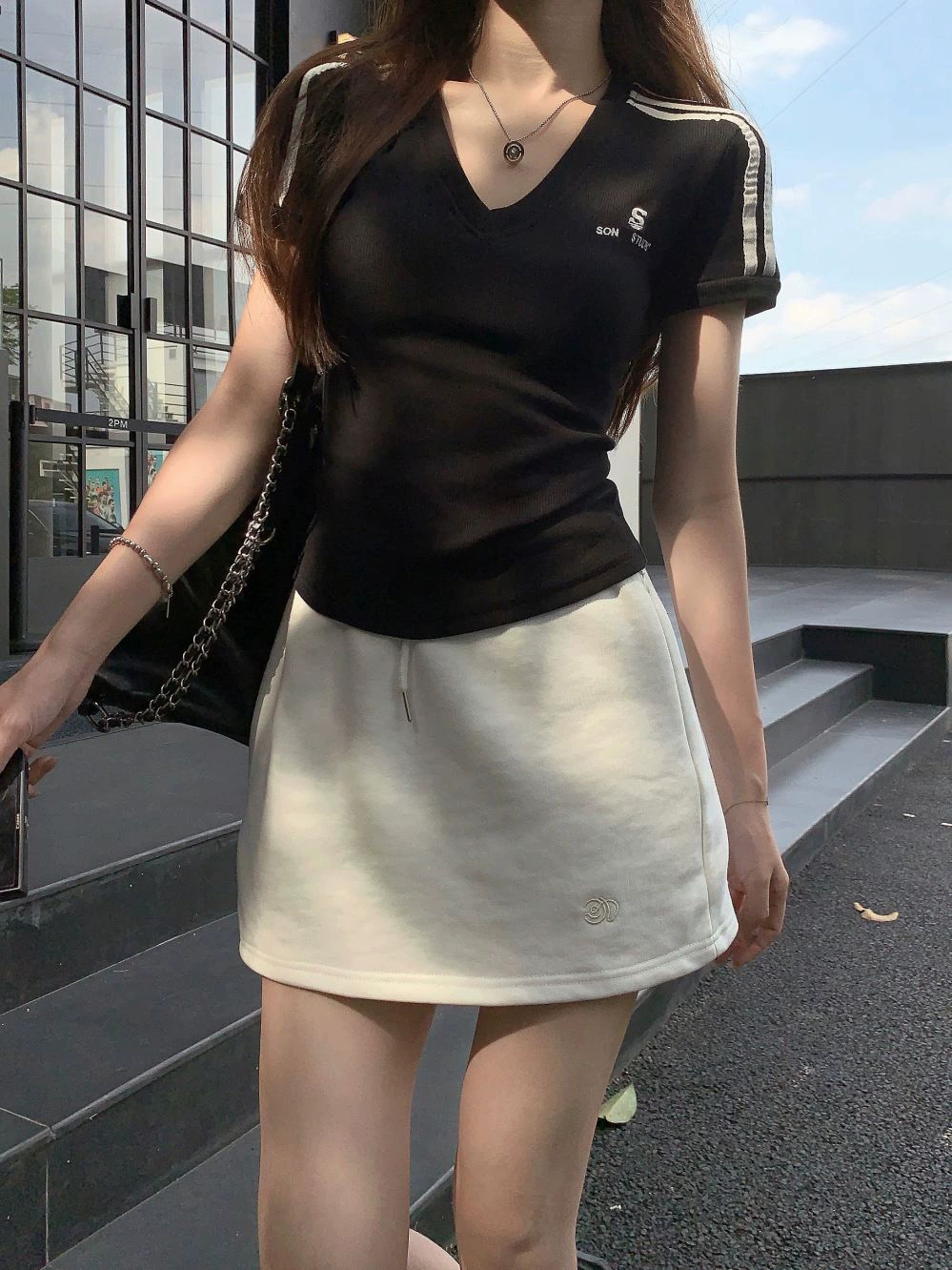 | nameOriginal | Women's summer v-neck right shoulder two-piece ins T-shirt |