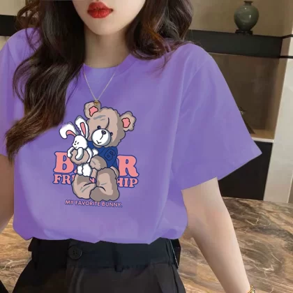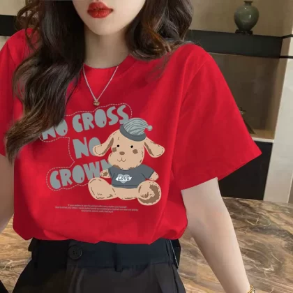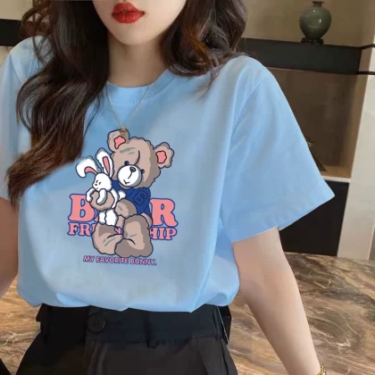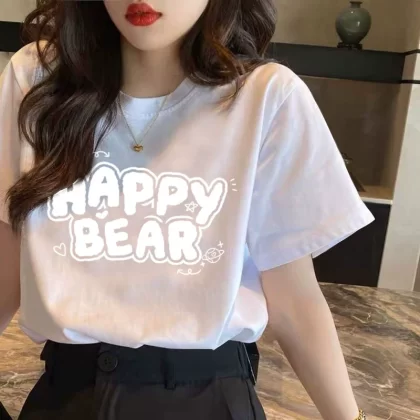 | nameOriginal | Women's summer white textured loose ins printed short-sleeved T-shirt |
