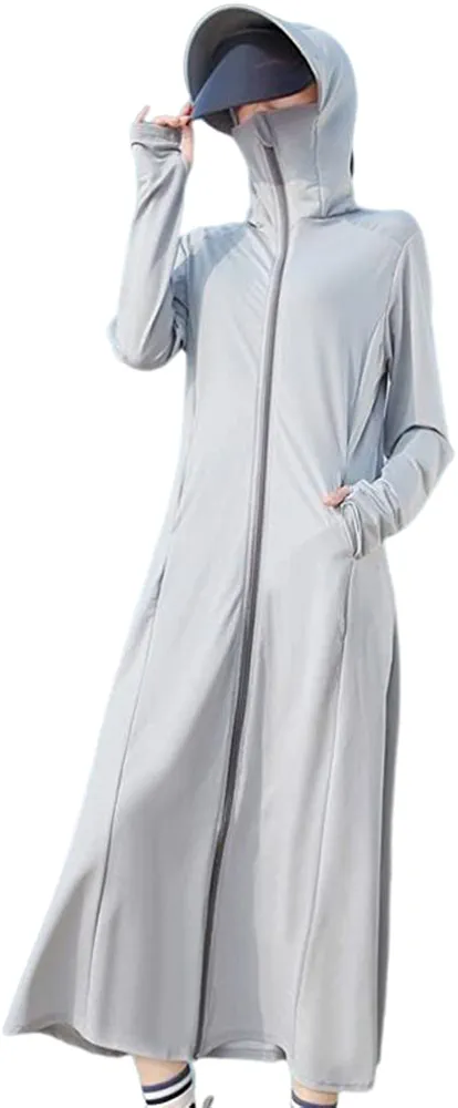Women’s Sun Protection Dress with Hoodie and Pockets for Beach and Hiking.