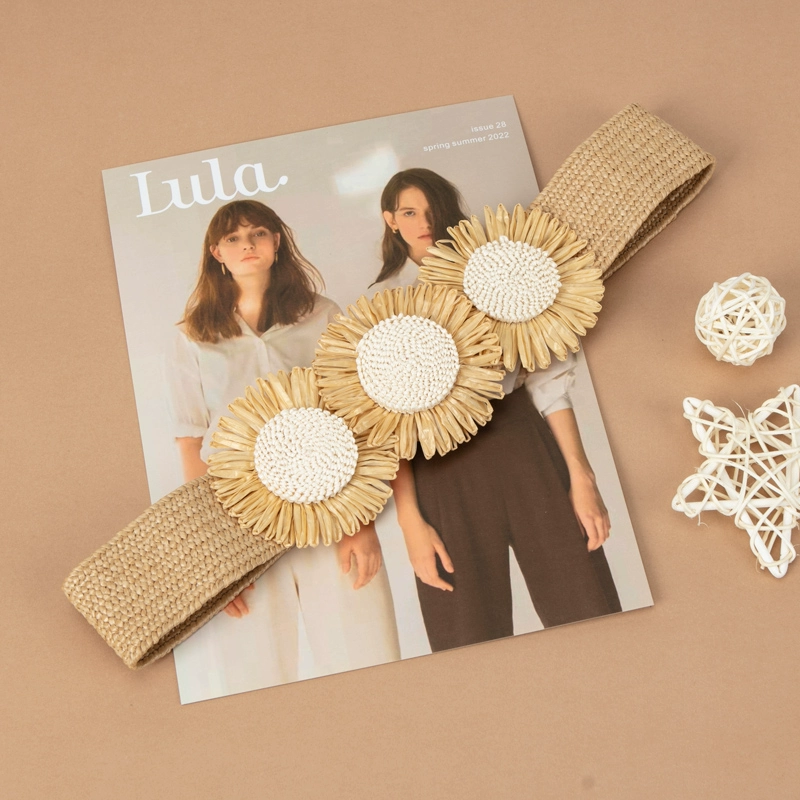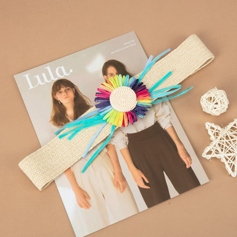 Women's Sunflower Elastic Windbreaker Fashion Round Buckle Belt