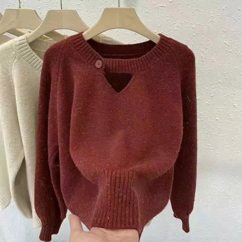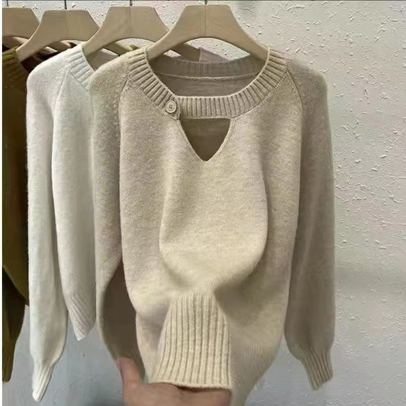 | nameOriginal | Women's sweater 2023 autumn and winter New style lazy style Japanese retro hollow sweater inner wear gentle bottoming shirt top |