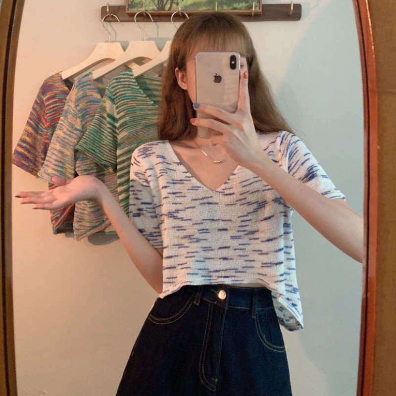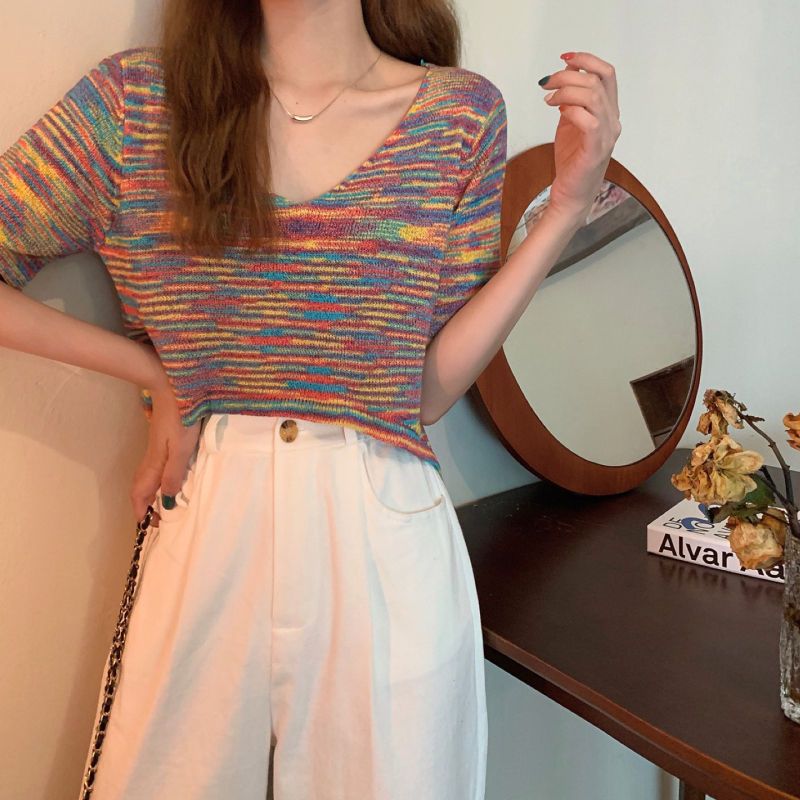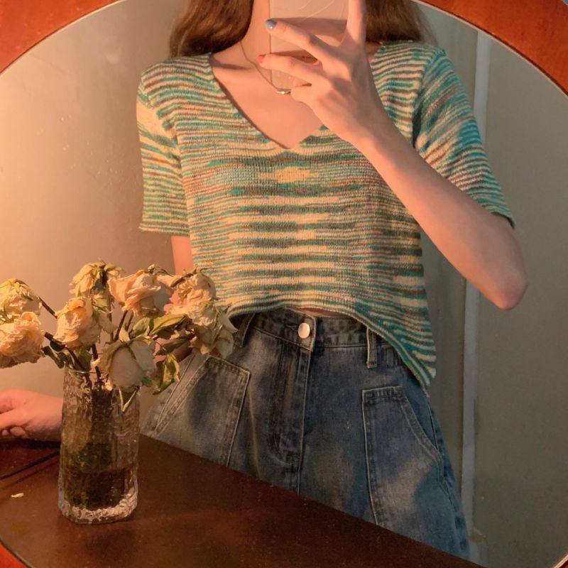 | nameOriginal | Women's Sweater Summer Thin 2024 New Elegant Short Loose V-neck Hollow Short Sleeve Chic Top Trendy |