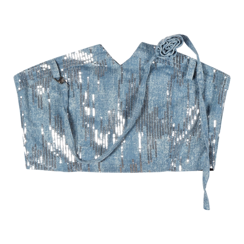 Women's sweet and cool hottie denim hip-hugging two-piece sequin set