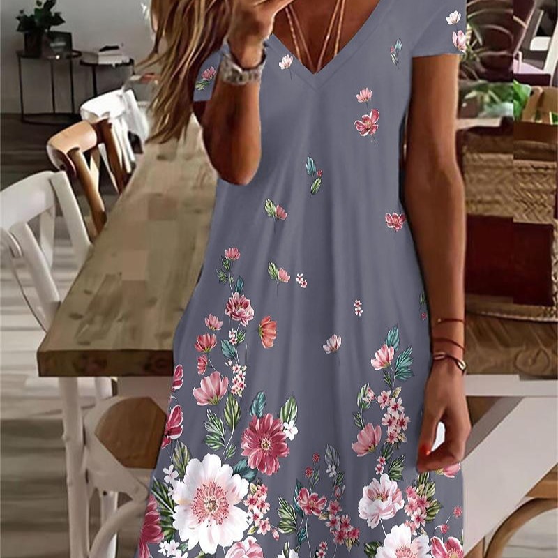 | nameOriginal | Women's T-shirt Group Printed V-neck Mini Dress Active Fashion Outdoor Daily Short Sleeve Regular Slim Fit |